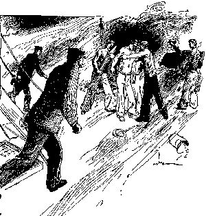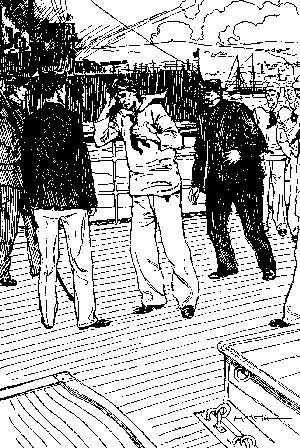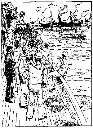 The man using the "lead line" (as the sounding-line weighted with lead is called) stands on a grating that projects over the side. This is placed near enough so that the steersman can hear the man who "heaves the lead" when he calls out the number of fathoms of water. This he tells by the marks on the "lead line" as follows: