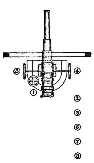 1. Stands at elevating gear wheel and sights and fires the gun.