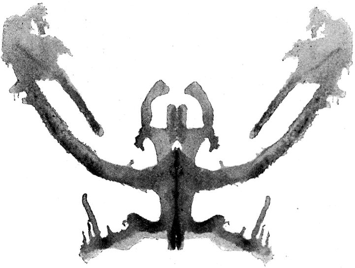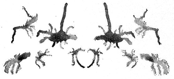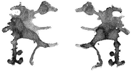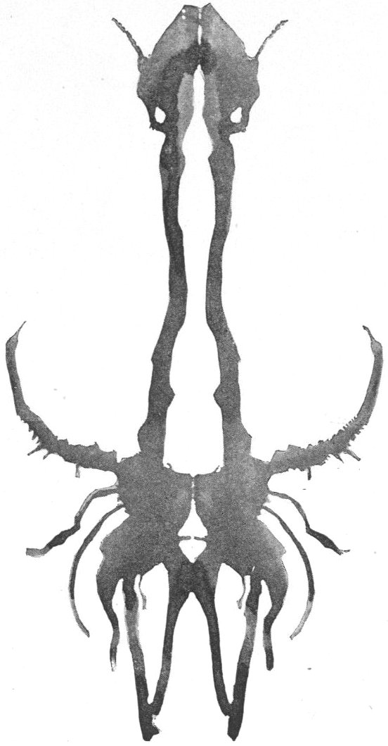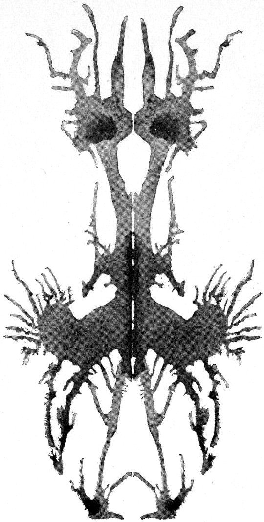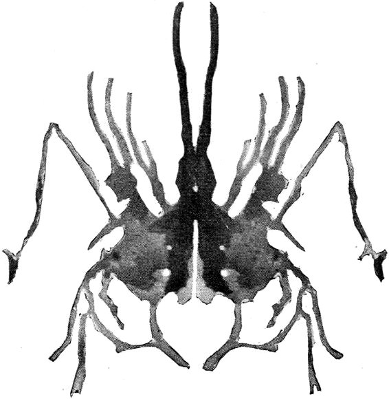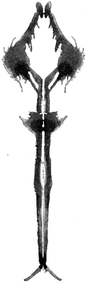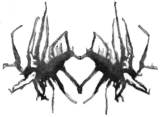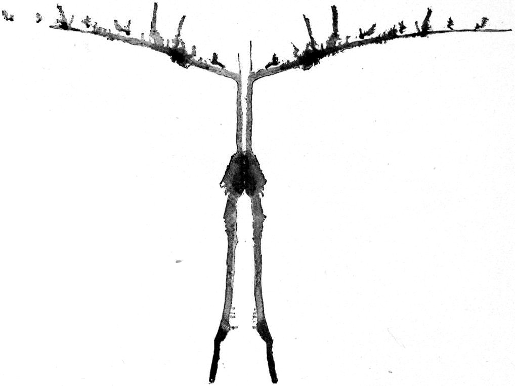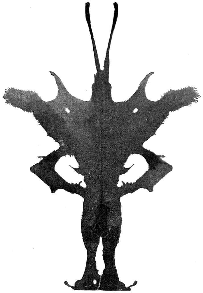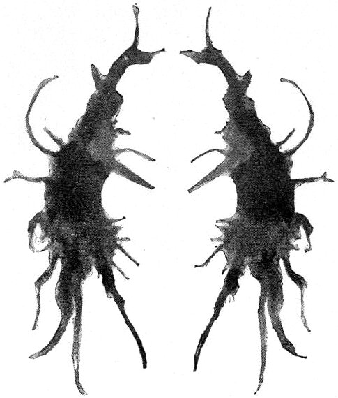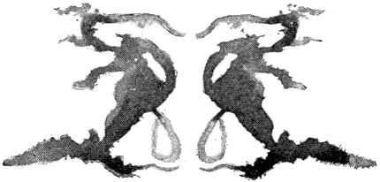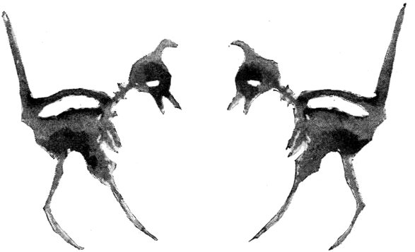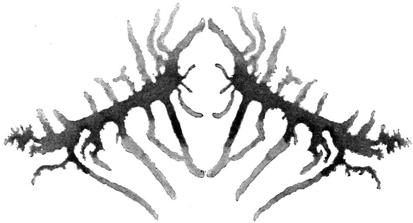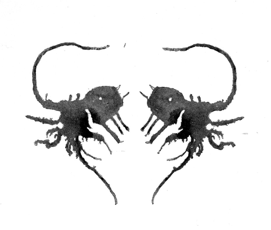 Drop a little ink on a sheet of white paper. Fold the sheet in the center and press the ink-spots together with the fingers. All of the pictures in this book were made in this manner——none of them having been touched with a pen or brush.