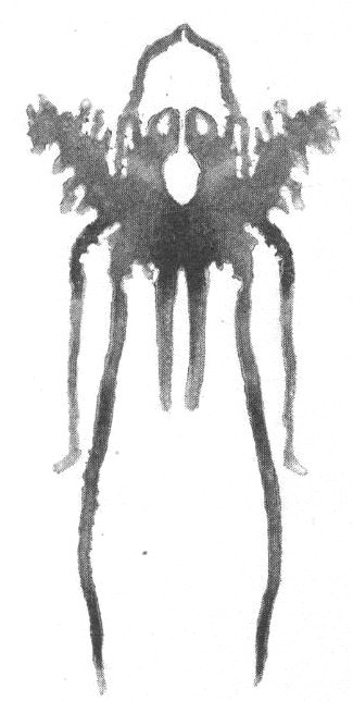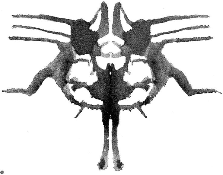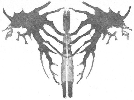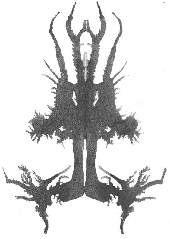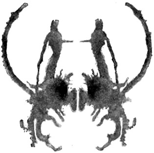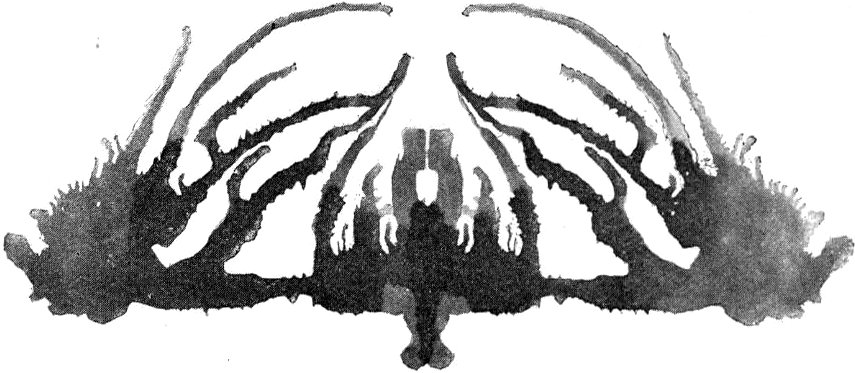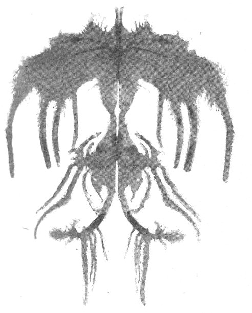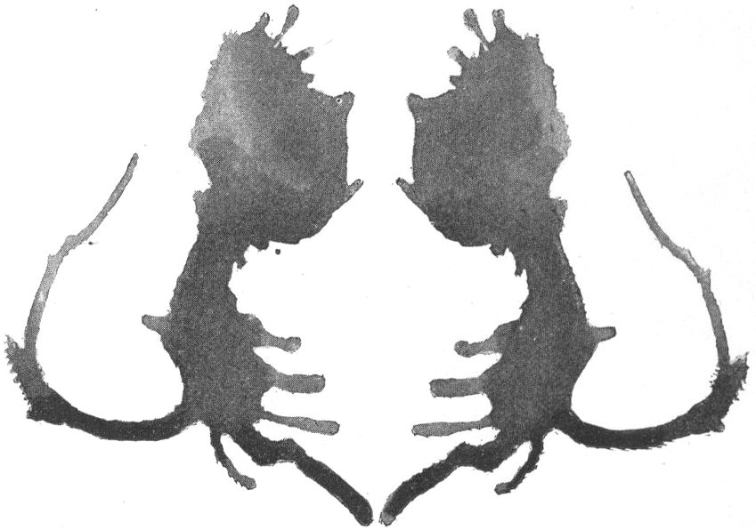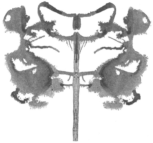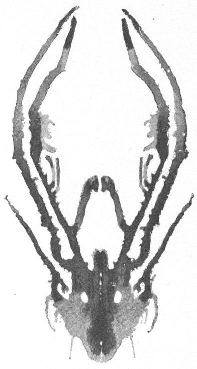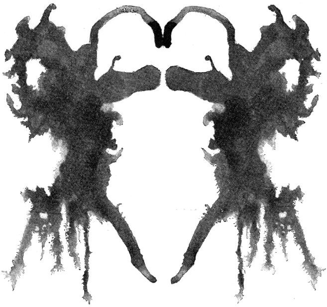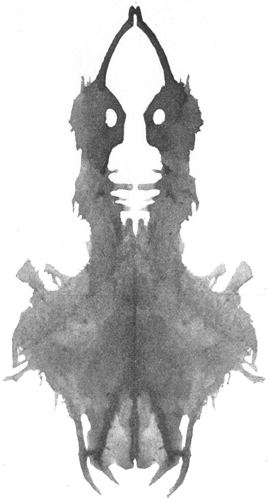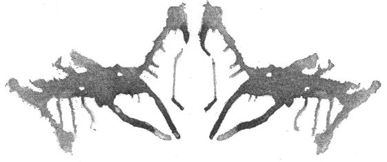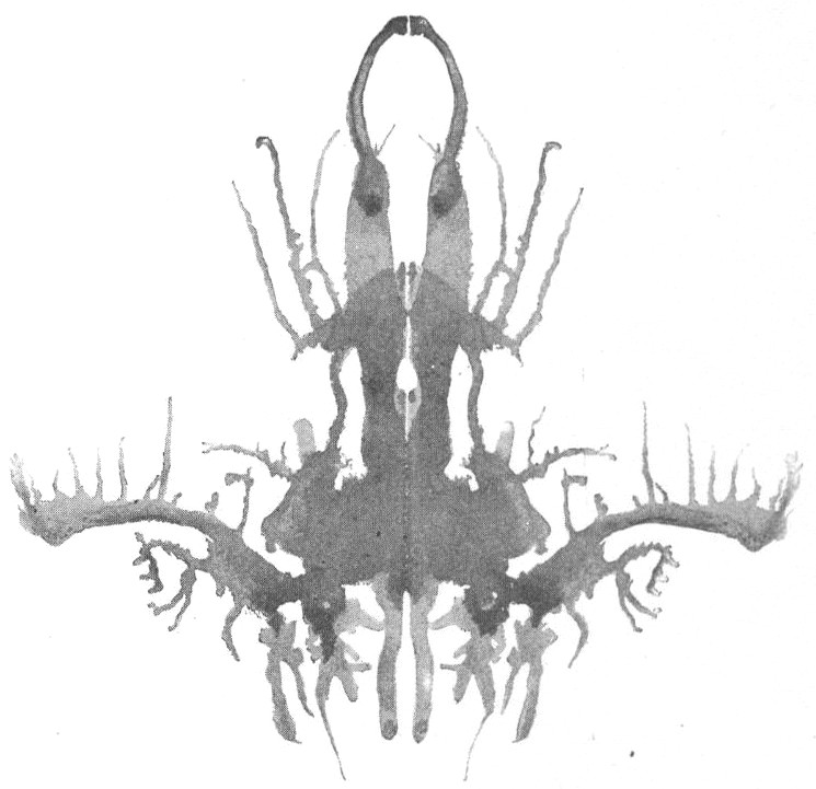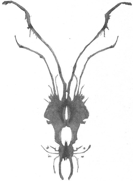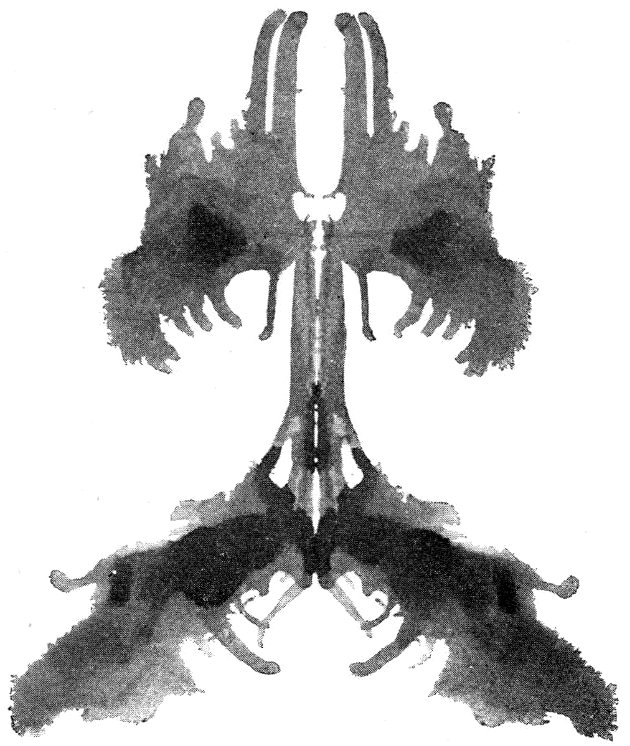 Drop a little ink on a sheet of white paper. Fold the sheet in the center and press the ink-spots together with the fingers. All of the pictures in this book were made in this manner——none of them having been touched with a pen or brush.