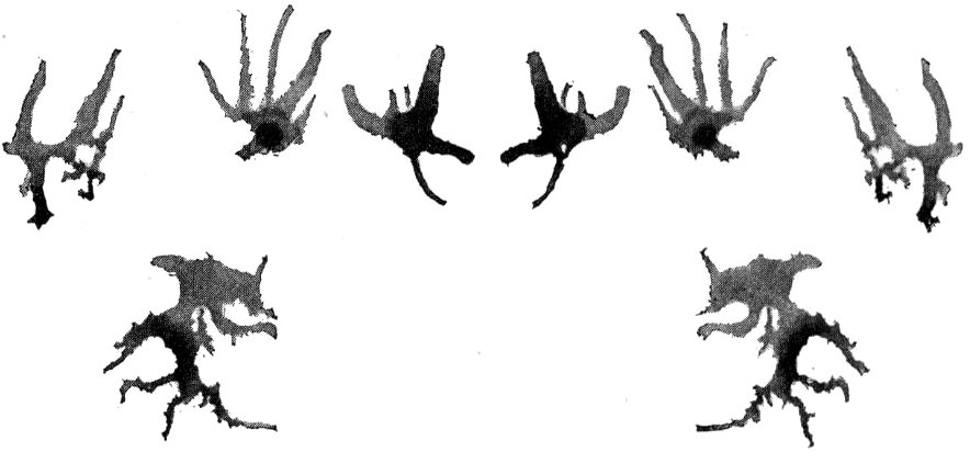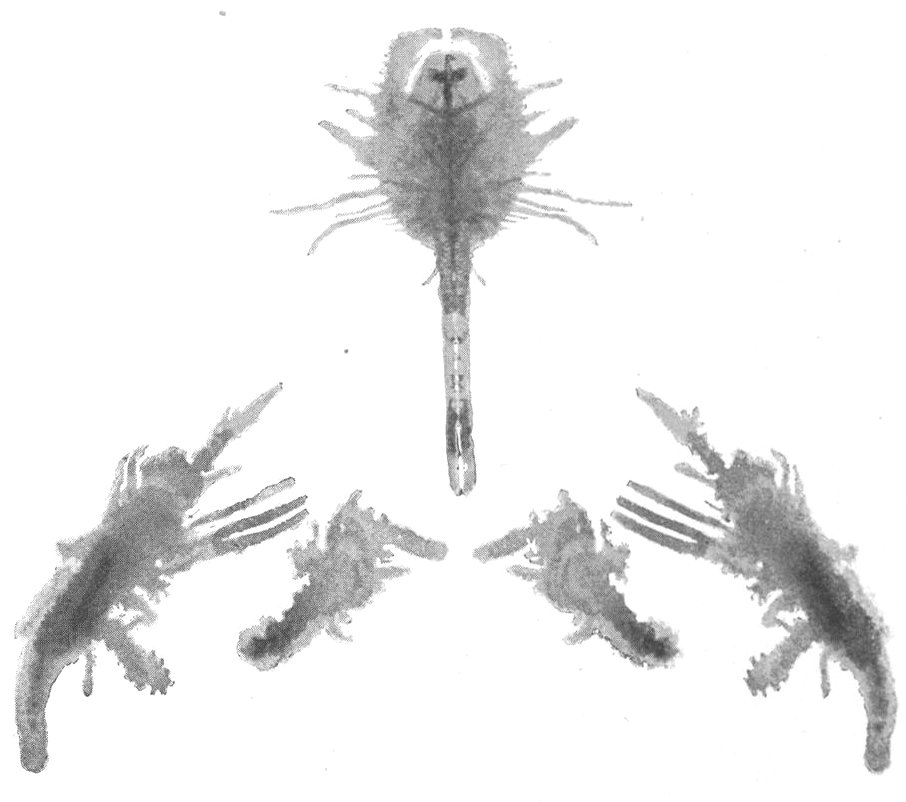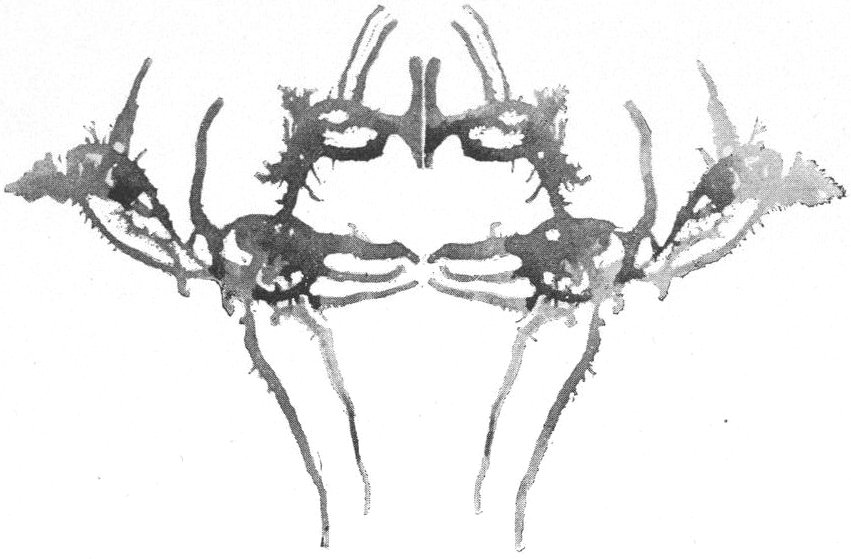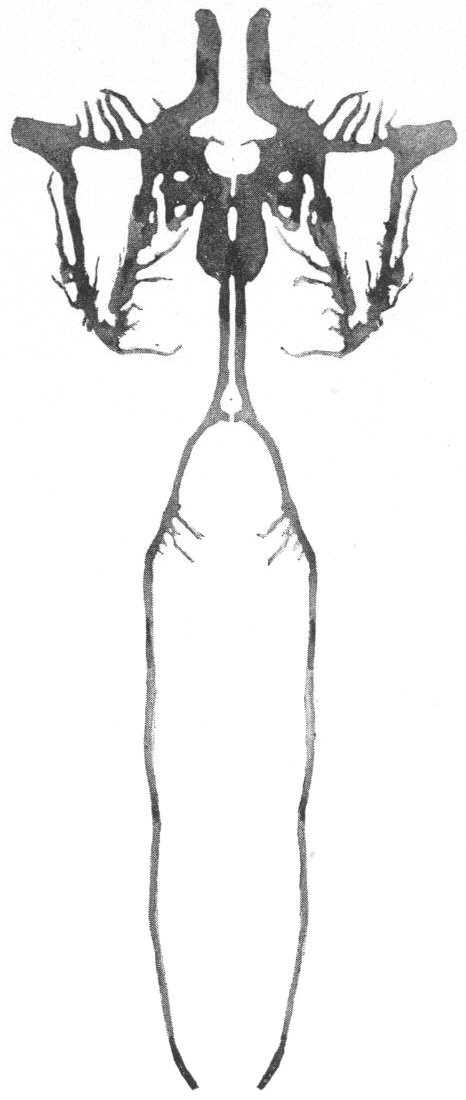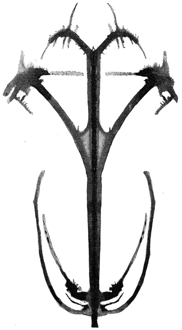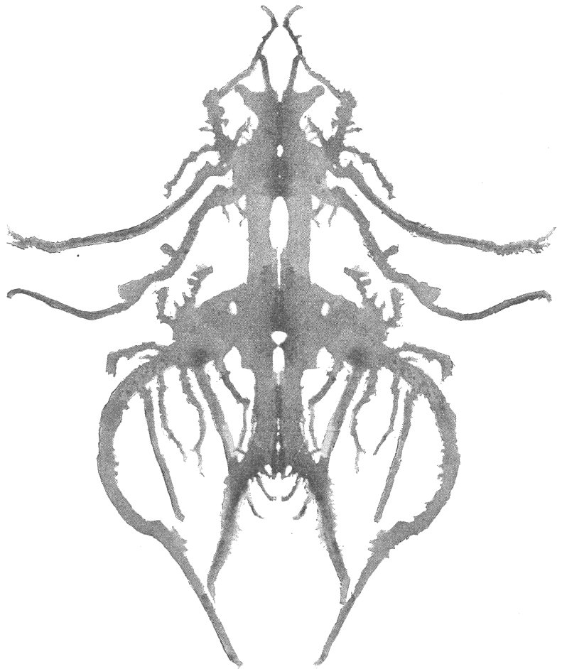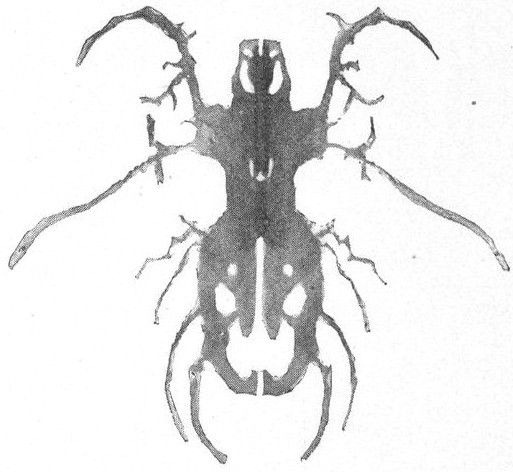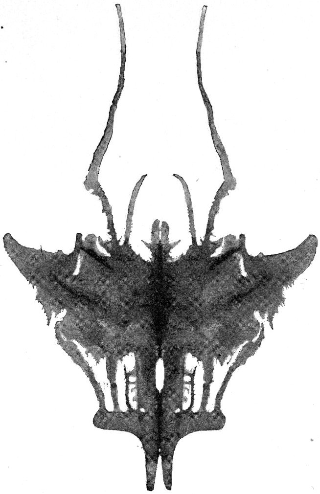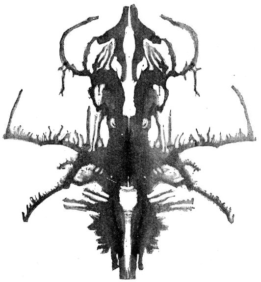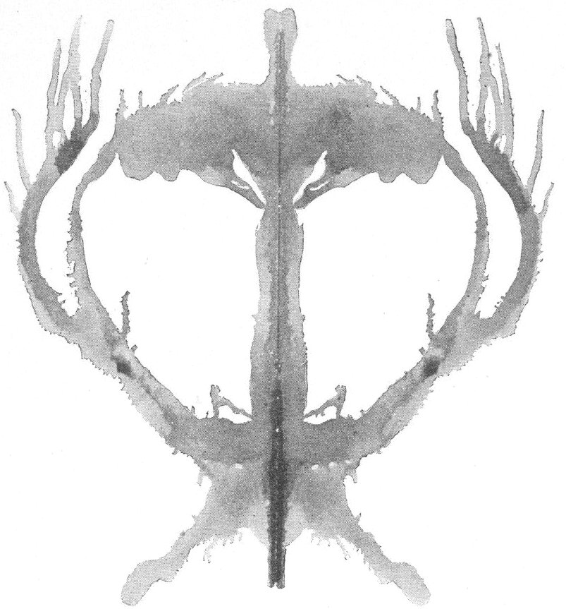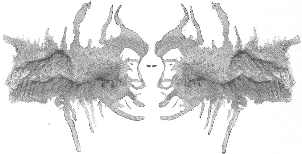 Drop a little ink on a sheet of white paper. Fold the sheet in the center and press the ink-spots together with the fingers. All of the pictures in this book were made in this manner——none of them having been touched with a pen or brush.