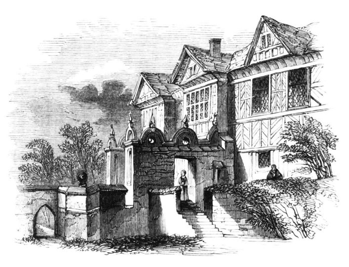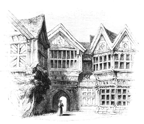 Brereton occurs in the Survey—when it formed part of the territorial possessions of Gilbert de Venables, Baron of Kinderton. A family, which assumed the local name, had a grant of it as early as the reign of William Rufus. This is the parent stock of the very widely-spreading family of Brereton; and they are to be traced here to about the year 1200. Sir William Brereton, 13th in descent from the founder, was engaged in the wars in Ireland. In 1534, with his son John, he was inshored at Howth with 250 soldiers, well appointed. In the same year he went to summon the strongly fortified castle of Maynooth, which he took by storm, running up “the highest turret of the castle, and advancing his standard on the top thereof, notifienge to the Deputie that the fort was woone.” Another Sir William built this stately mansion, and entertained his royal guest within its halls. In 1624 Sir William Brereton was created Lord Brereton of Leighlin in Ireland, on the death of Francis Lord Brereton. In the wars between Charles I. and the Parliament, another Sir William of this family, but not of Brereton Hall, the famous parliamentarian general, took a very conspicuous part. So early as August, 1642, he began to beat up for recruits, and in the severe contest of the following years, attended by such various fortune, he many times commanded in this county. In June 1644, he received the appointment of Major-General of Cheshire from the Parliament; and ultimately took the strong fortress of Beeston Castle, and the city of Chester itself, by siege; which put an end to the war in this county. Lord Brereton, of Brereton Hall, however, who had espoused the cause of the King, fled before his nephew the parliamentarian general, to Biddulph Hall, in Staffordshire, whither Sir William pursued him, and took him prisoner.[3] In 1722, the male line of the family{22}. In 1722 the male line of the family became extinct by the death of Lord Brereton. The Hall and estates subsequently passed, through female inheritance, to A. Bracebridge, Esq.[4] In 1817, to satisfy certain claims upon it, the estate was dismembered by Act of Parliament; and, after being many years uninhabited, Brereton Hall was purchased by the present proprietor, John Howard, Esq.