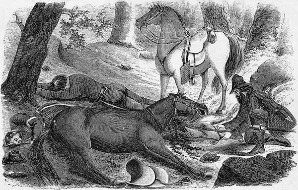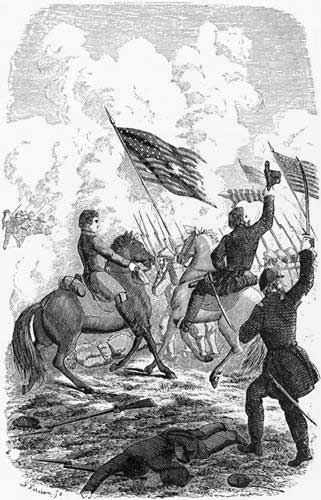 To add to the dramatic effect of the scene, a line of battle was formed by the remaining troops in that section, a short distance from camp, to repel an expected attack of the enemy.