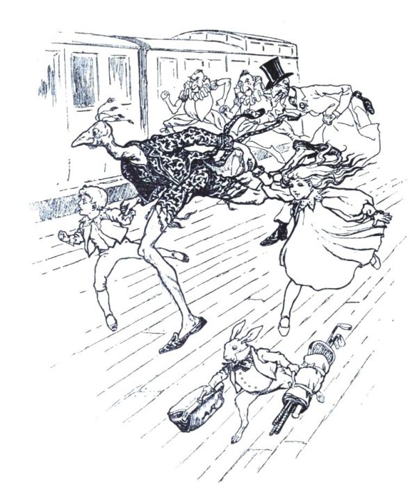 They were all standing under the clock at Charing Cross Station when the station was closed and everybody else had departed, except the train which the Zankiwank had himself chartered. It was all so odd and strange, and the gathering was so very motley, that if it had been to-morrow morning instead of last night, Willie and Maude would certainly have said they had both been dreaming. But, of course, they were not dreaming because they were wide-awake and dressed. Besides, they remembered Charing Cross Station quite well, having started therefrom with their father and mother only last summer when they went to the sea-side for their holidays—and what jolly times they had on the sands! So Maude said promptly, "It is not Night-mare or Dreams or Anything. We don't know what it is, but we must not go to sleep, Willie, in case anything should happen."