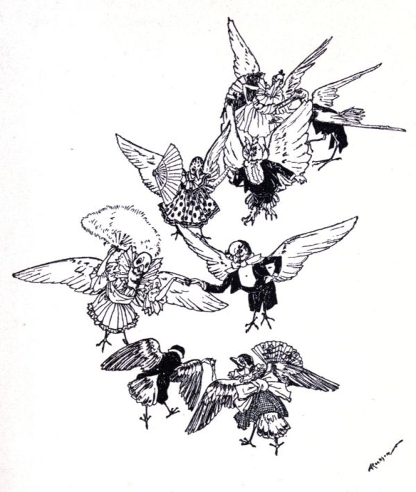 Then they spread out their wings and executed the most diverting feather dance ever seen out of a pantomime.