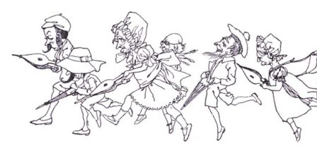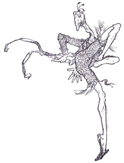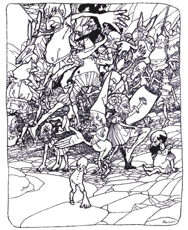 "Such a funny mistake to make!" he crowed hysterically to the hopping, hobbling, jumping crowd of monsters and dwarfs, who were glaring at each other in a very savage manner.