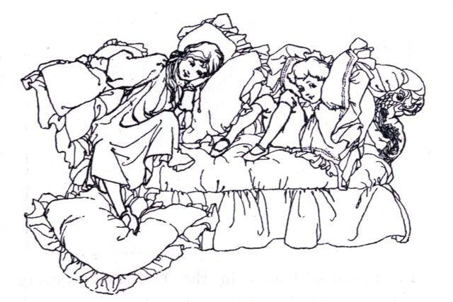 Then there was a rumbling and a tumbling, and something stopped suddenly. A light was flashed before their eyes, and hey presto! there was John opening the carriage door for them to get out, and wonder of wonders, there were their dear mother and father standing in the hall of their own home waiting to receive them. And presently they were being kissed and caressed and petted because, as Mary their nurse said, they had slept in the carriage all the way home from the visit to their grandmama.
