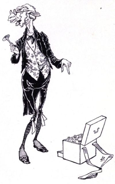 Mr Swinglebinks, unlike his two companions, was short, stout, and dreadfully important. In Fable Land, where we are going as soon as we start for that happy place, he kept a grocer's shop once upon a time. As nobody cared a fig for his sugar and currants, however, he retired from business and took to dates and the making of new almanacks, and was now travelling about for the benefit of his figures. He was very strong on arithmetic, and could read, write, and arith-metise before he went to school, so he never went at all.