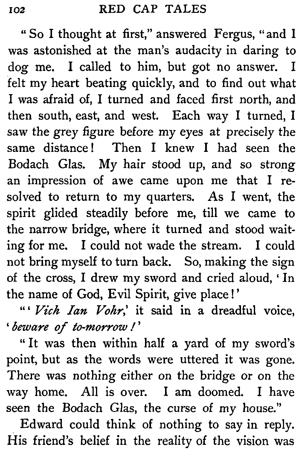 | 5 | "Vich Ian Vohr," it said in a dreadful voice, "beware of to-morrow" | 102 |