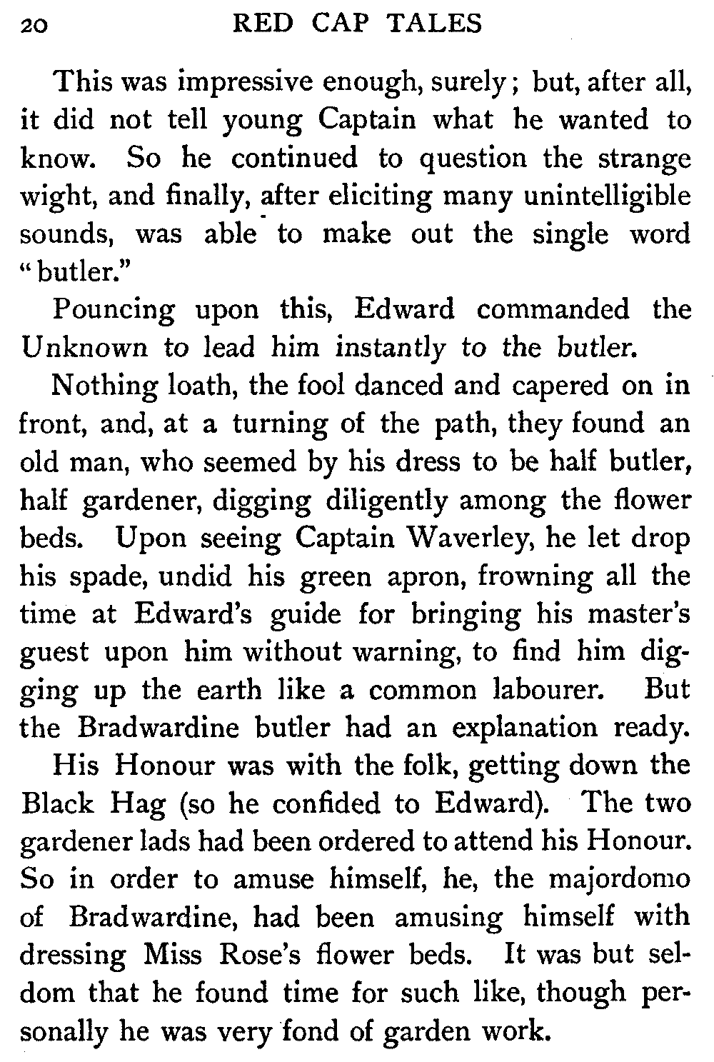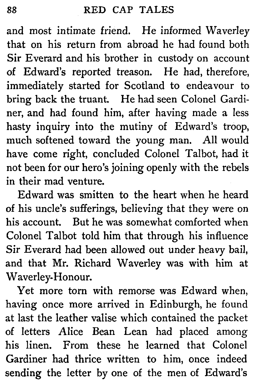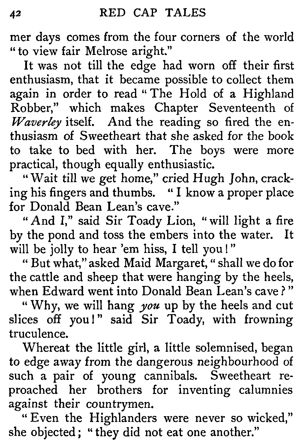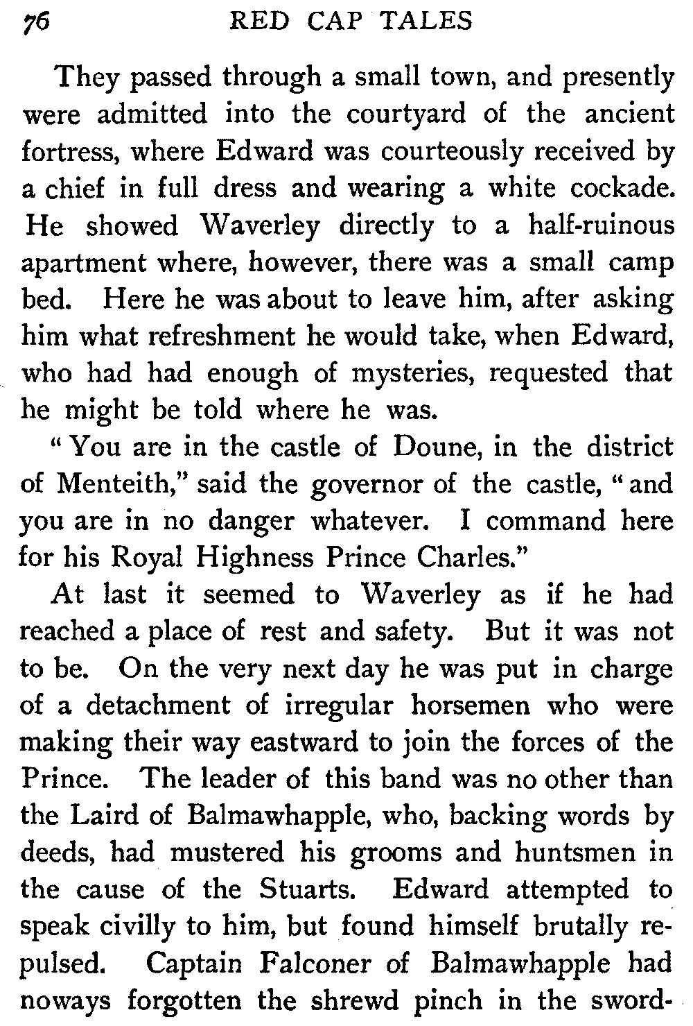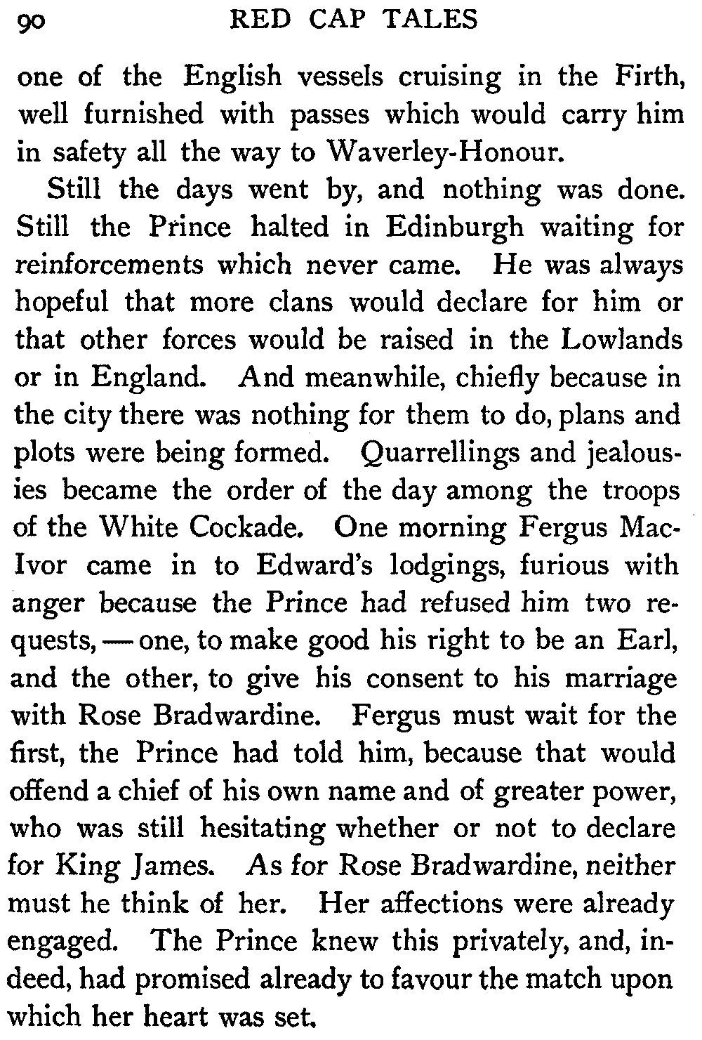 Now, since the first telling of these Red Cap Tales, the Scott shelf in the library has been taken by storm and escalade. It is permanently gap-toothed all along the line. Also there are nightly skirmishes, even to the laying on of hands, as to who shall sleep with Waverley under his pillow.