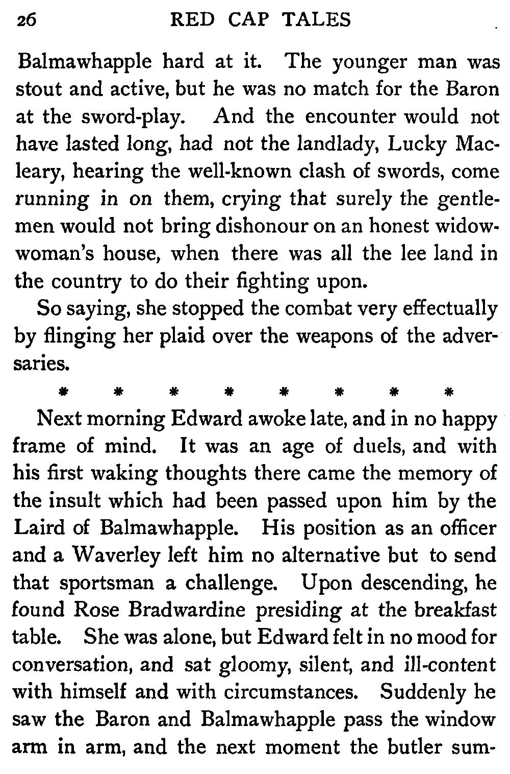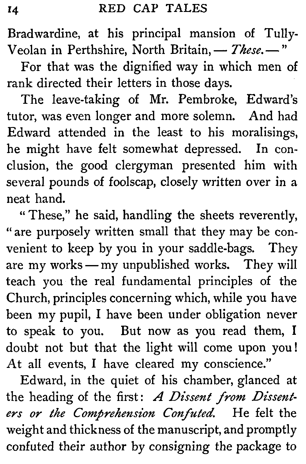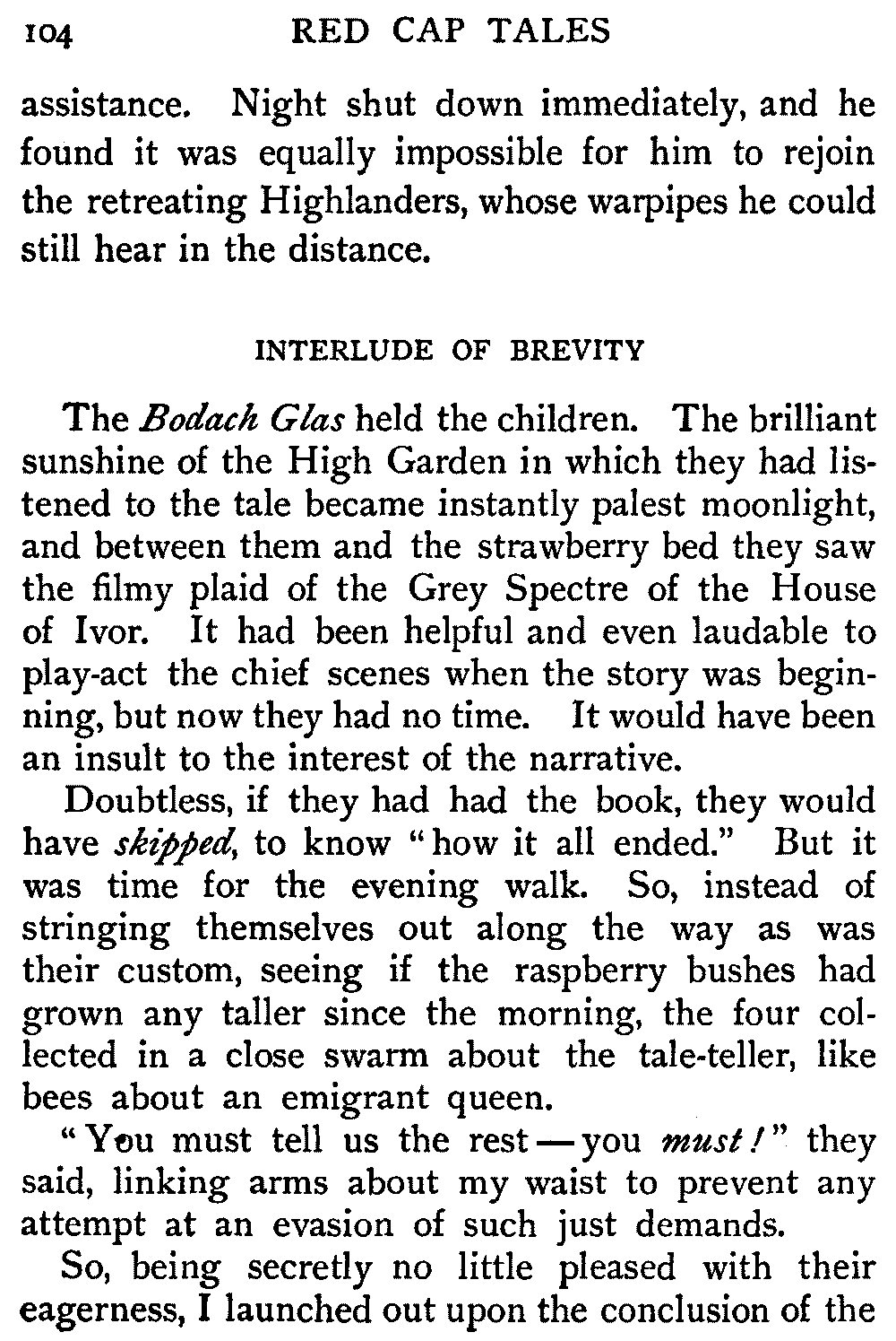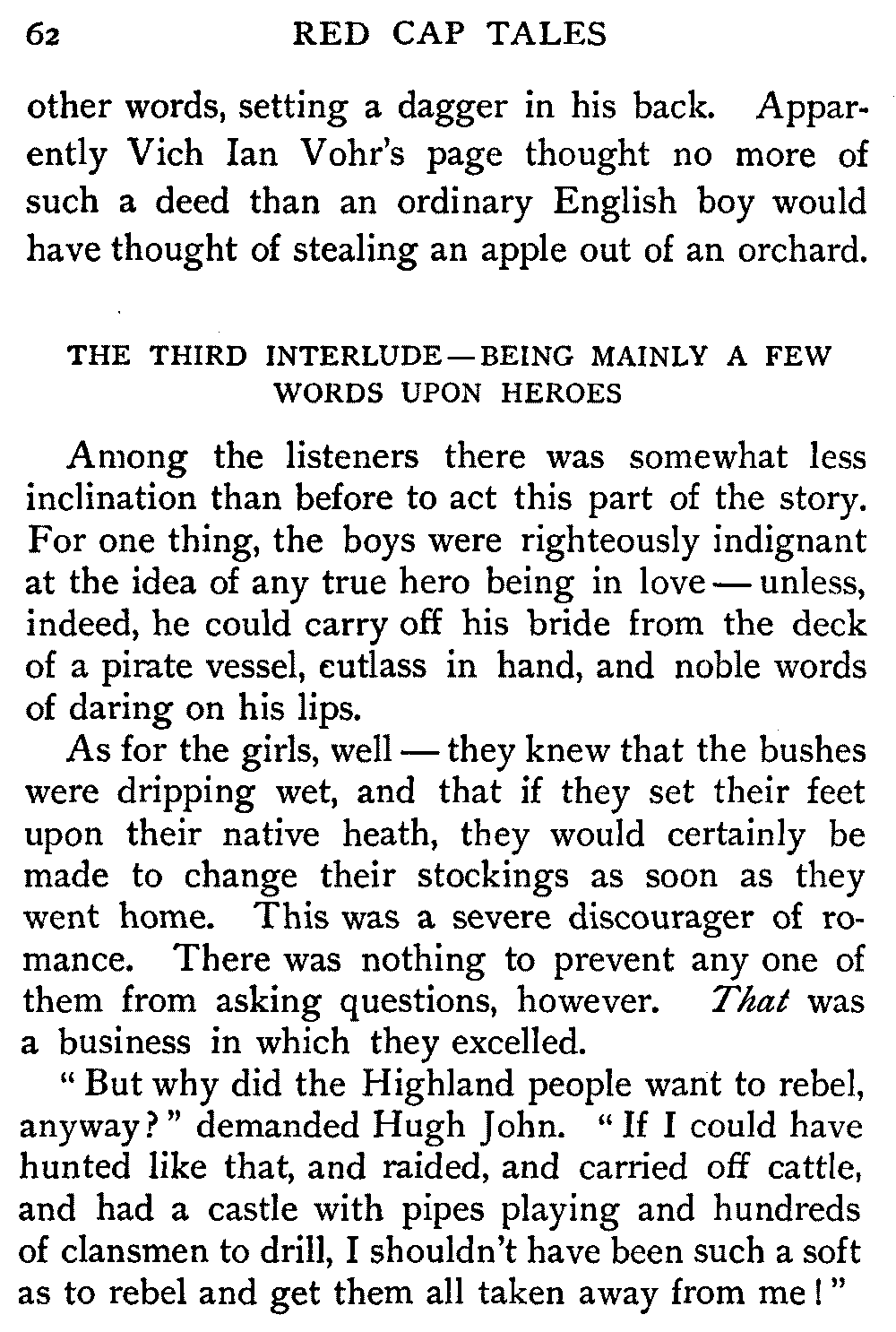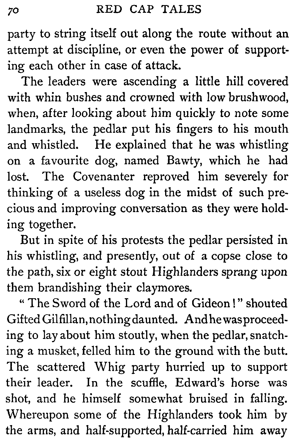 Now, since the first telling of these Red Cap Tales, the Scott shelf in the library has been taken by storm and escalade. It is permanently gap-toothed all along the line. Also there are nightly skirmishes, even to the laying on of hands, as to who shall sleep with Waverley under his pillow.
