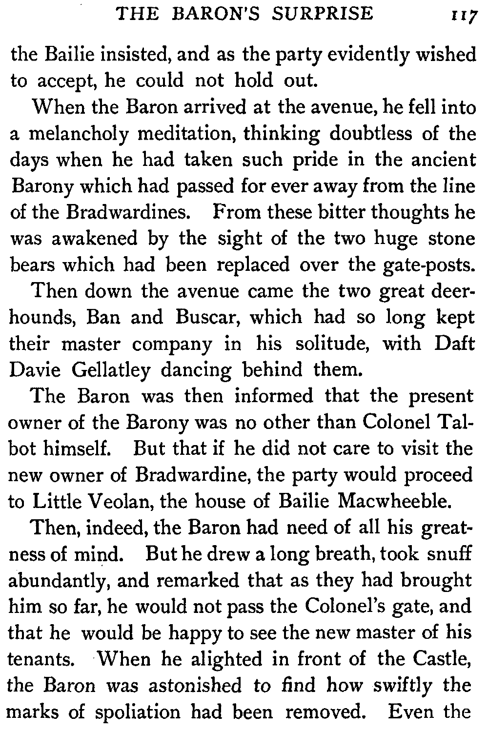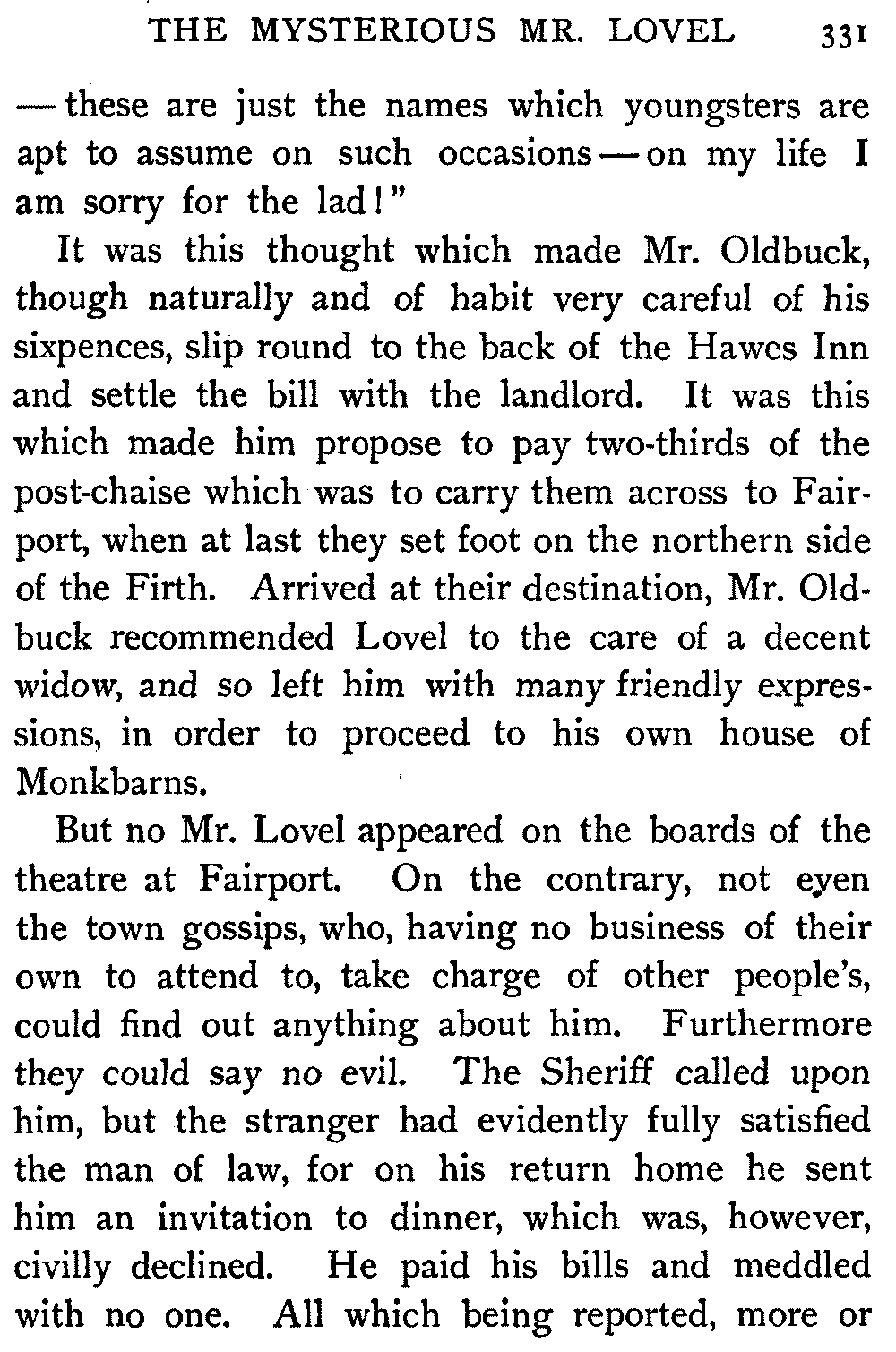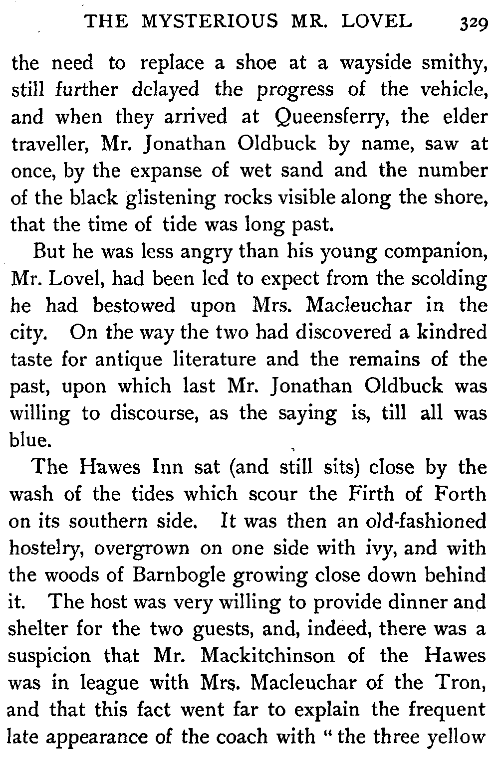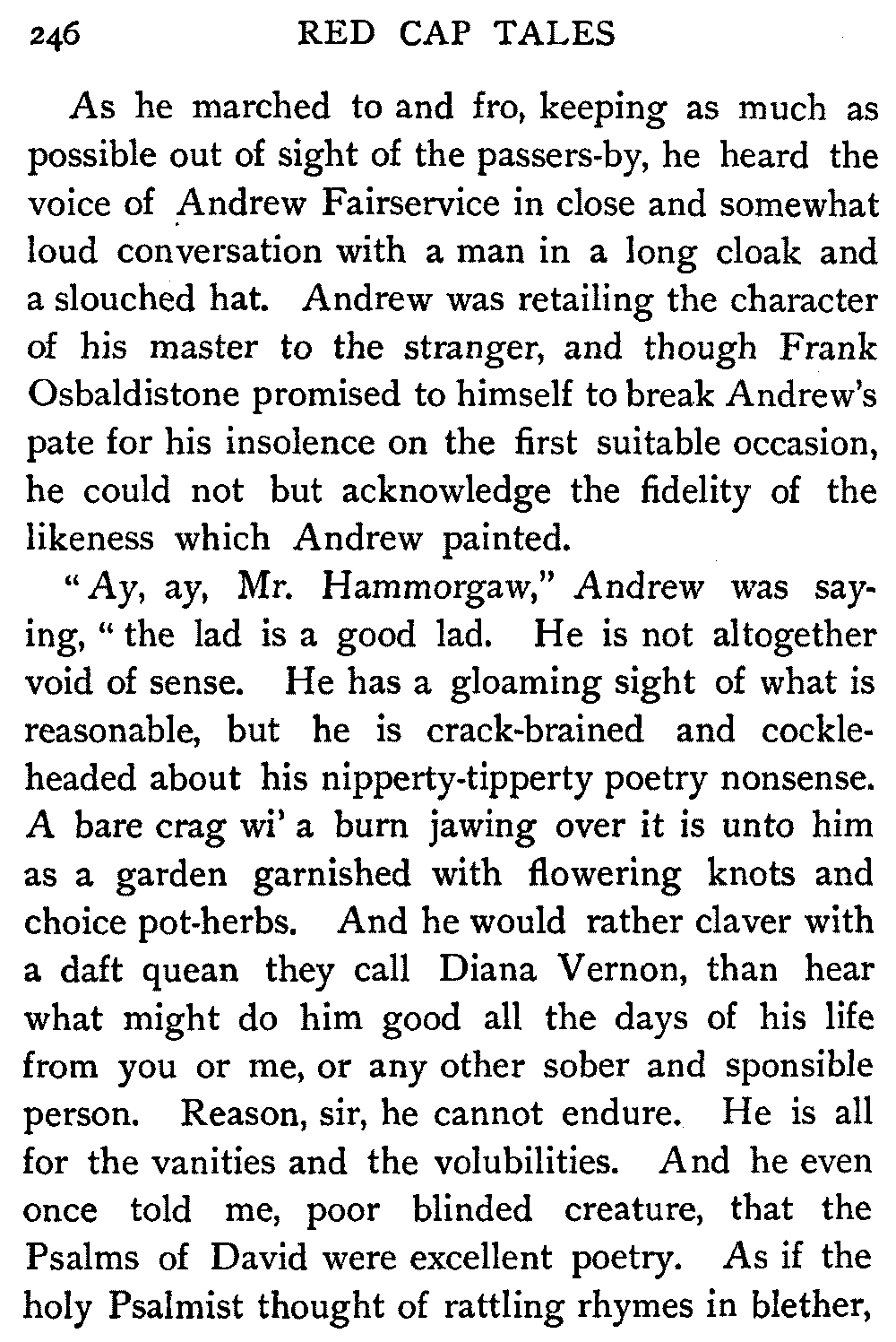 "Sir," said I to Hugh John, heavily parental, "The Antiquary may not now be much to your[413] taste, but the day will come when you may probably prefer it to all the rest put together."