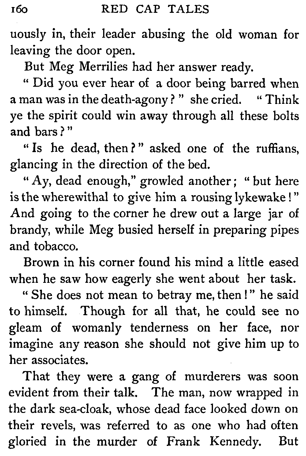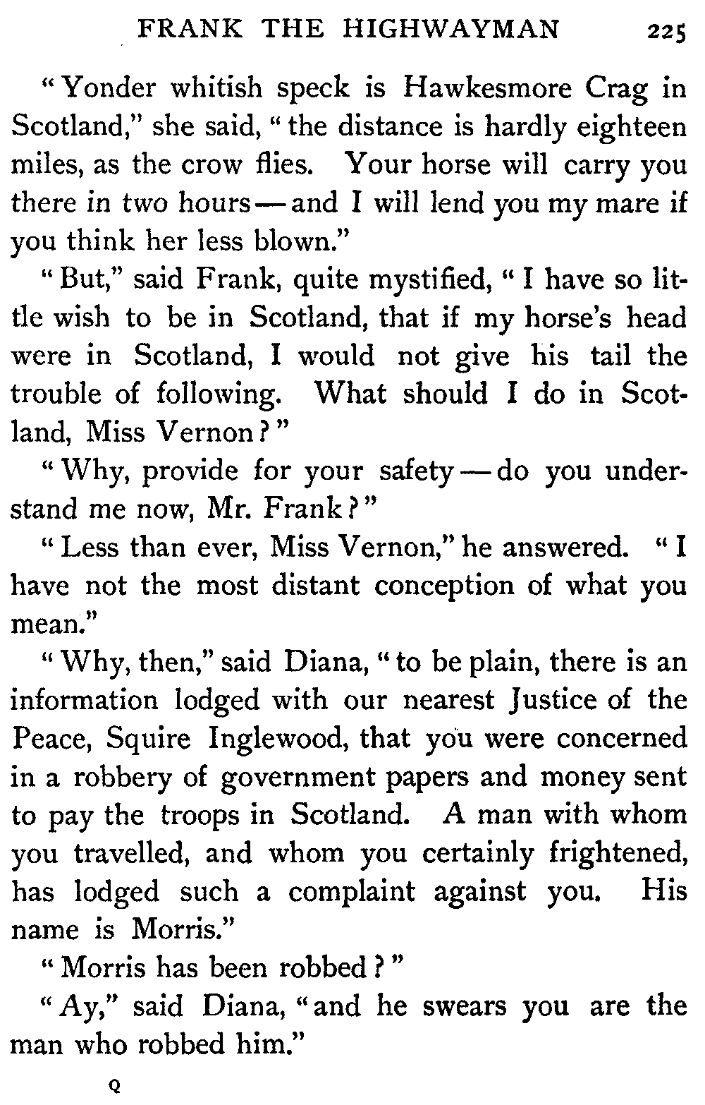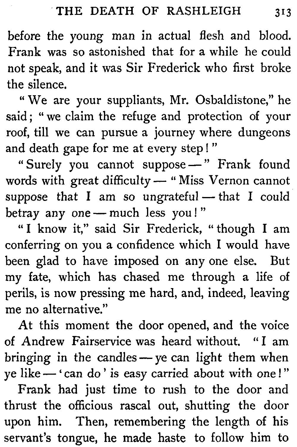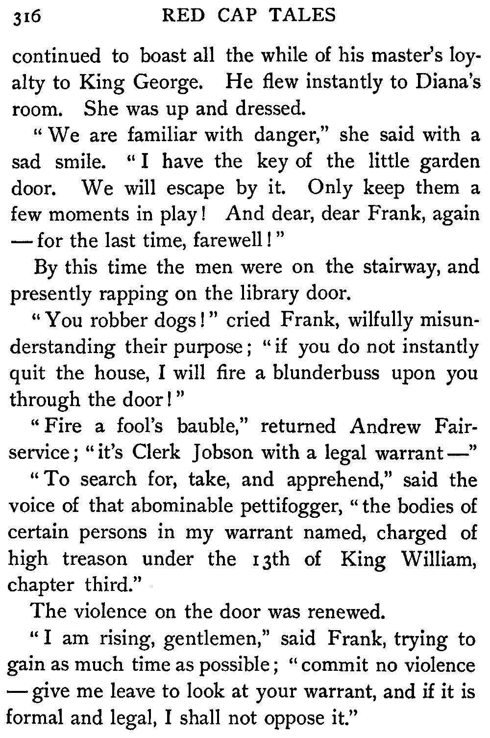 "Ha," she said, at the first question put to her by the Antiquary; "I thought it would come to this. It's only sitting silent when they question me. There's nae torture in our days, and if there was, let them rend me! It ill becomes a vassal's mouth to betray the bread which it has eaten."
