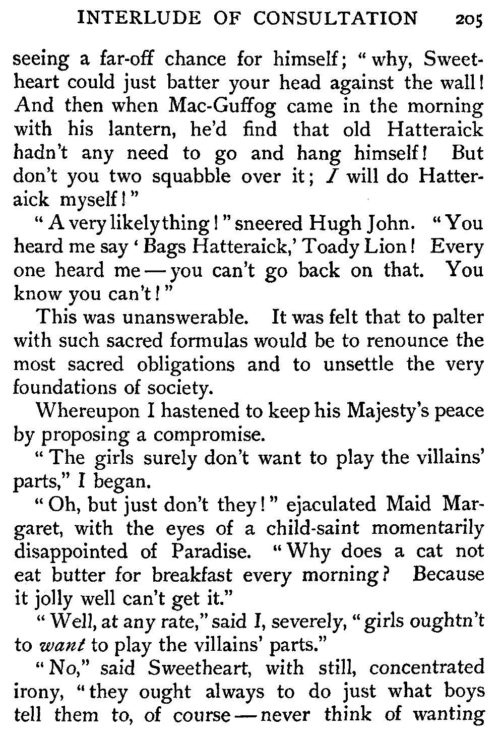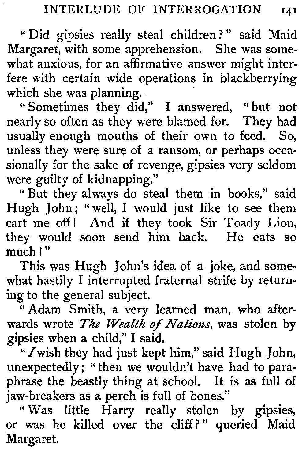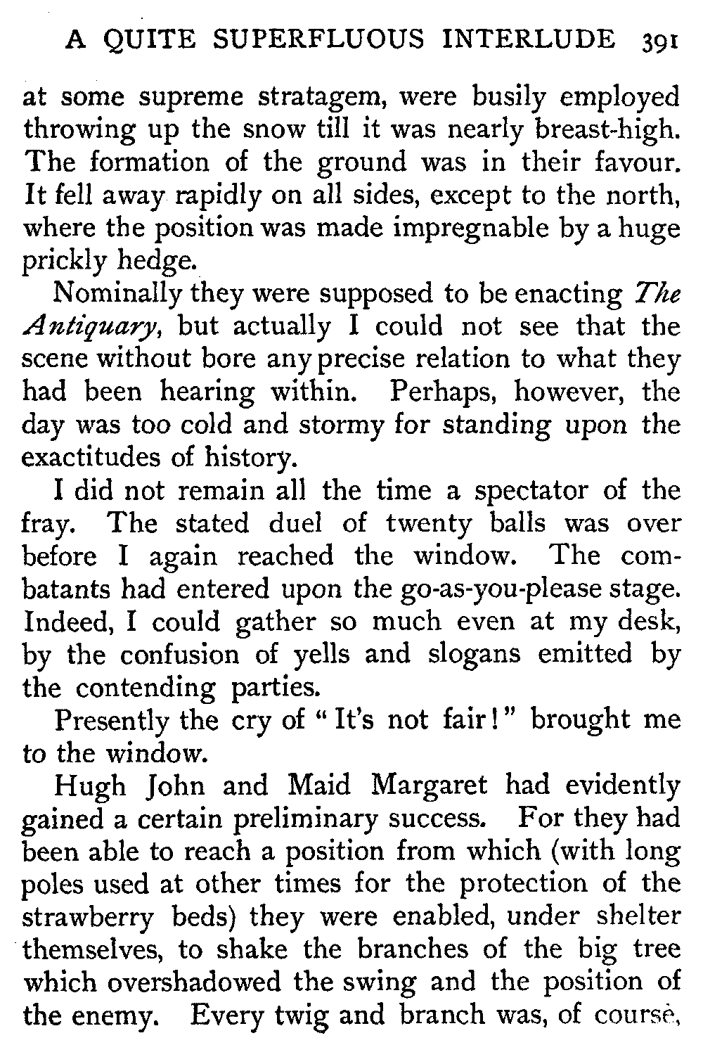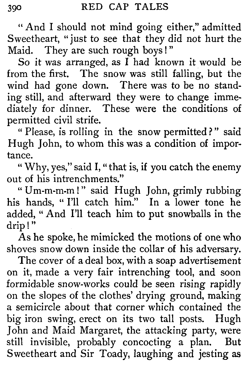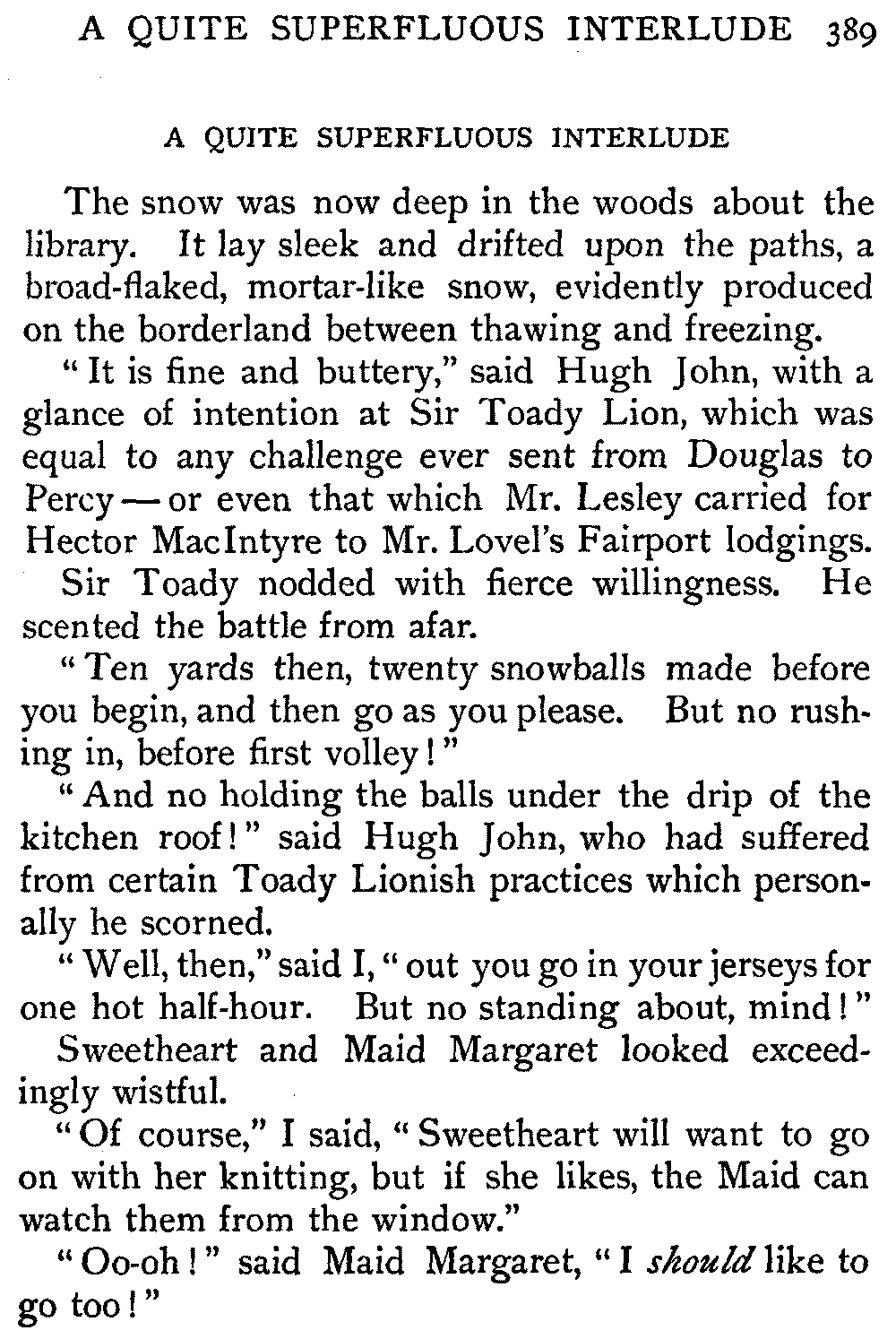 "Please, is rolling in the snow permitted?" said Hugh John, to whom this was a condition of importance.