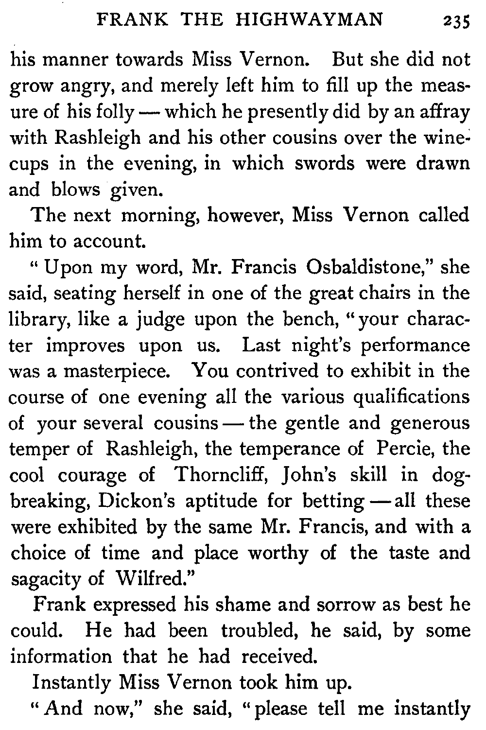 "That would indeed be difficult," said the undaunted Edie, "since your lordship has given me such good cause to remember it."