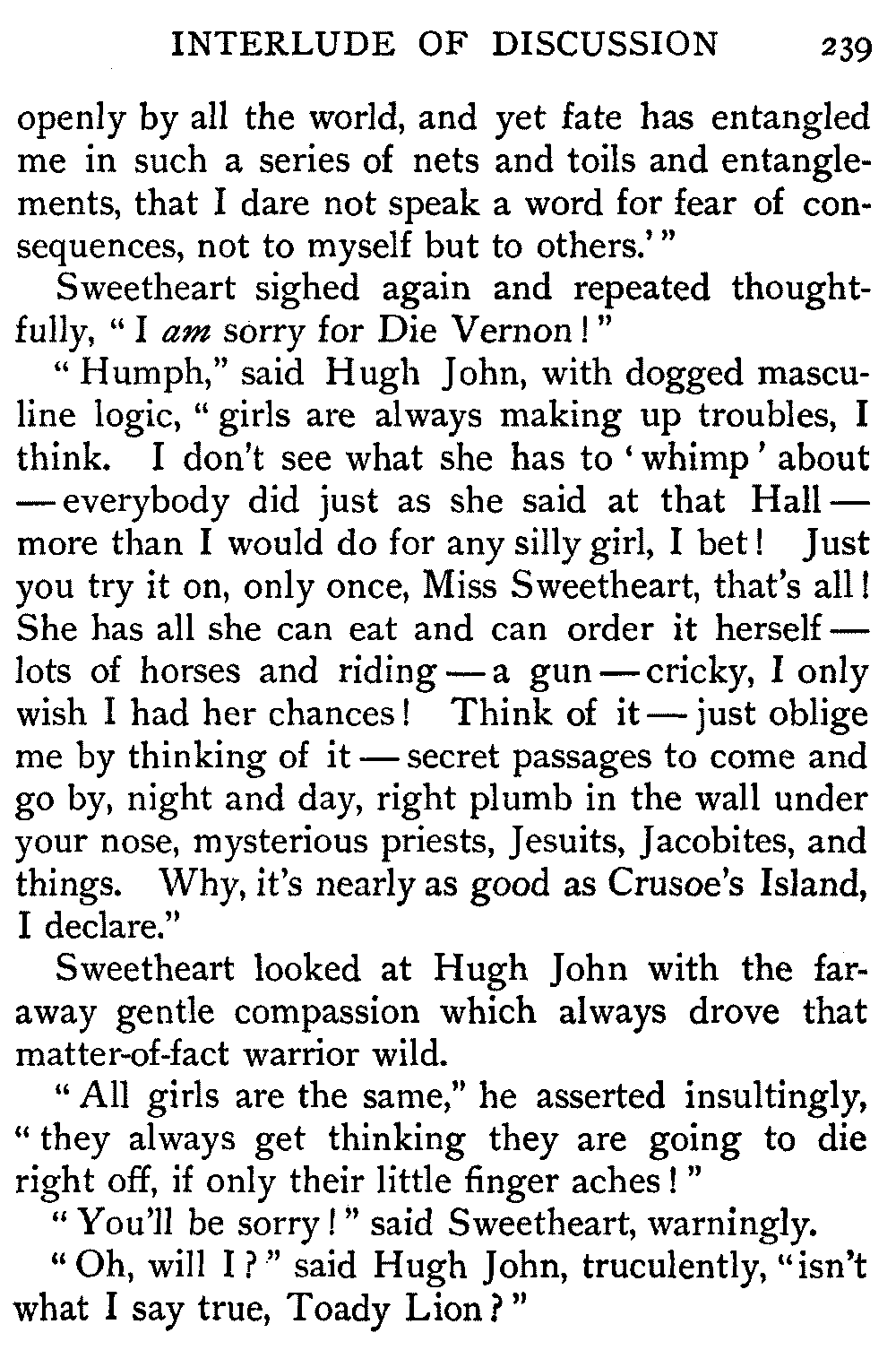 "Hush," said Sweetheart, "remember, it was written by Sir Walter."