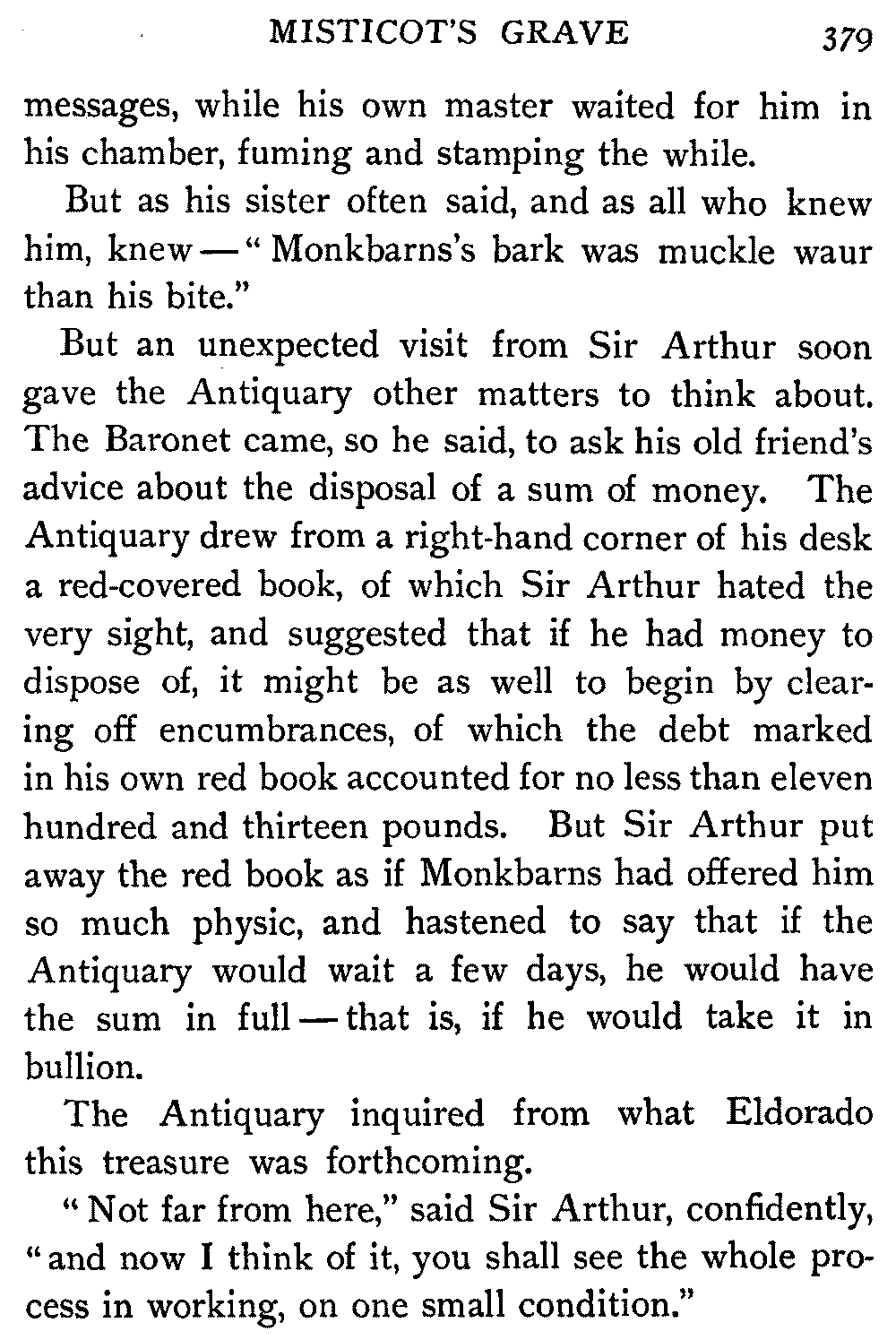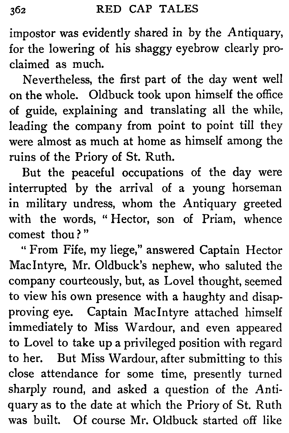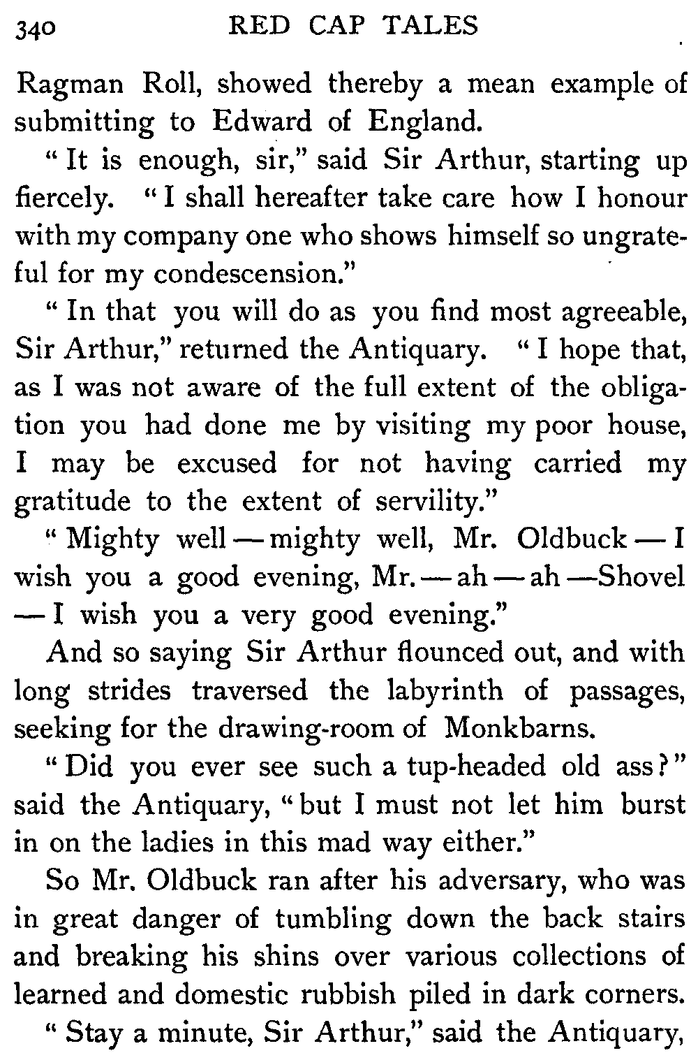 "I trust," interrupted Mr. Oldbuck, with some feeling, "that you will find a Protestant can be as honest and honourable as a Catholic."
