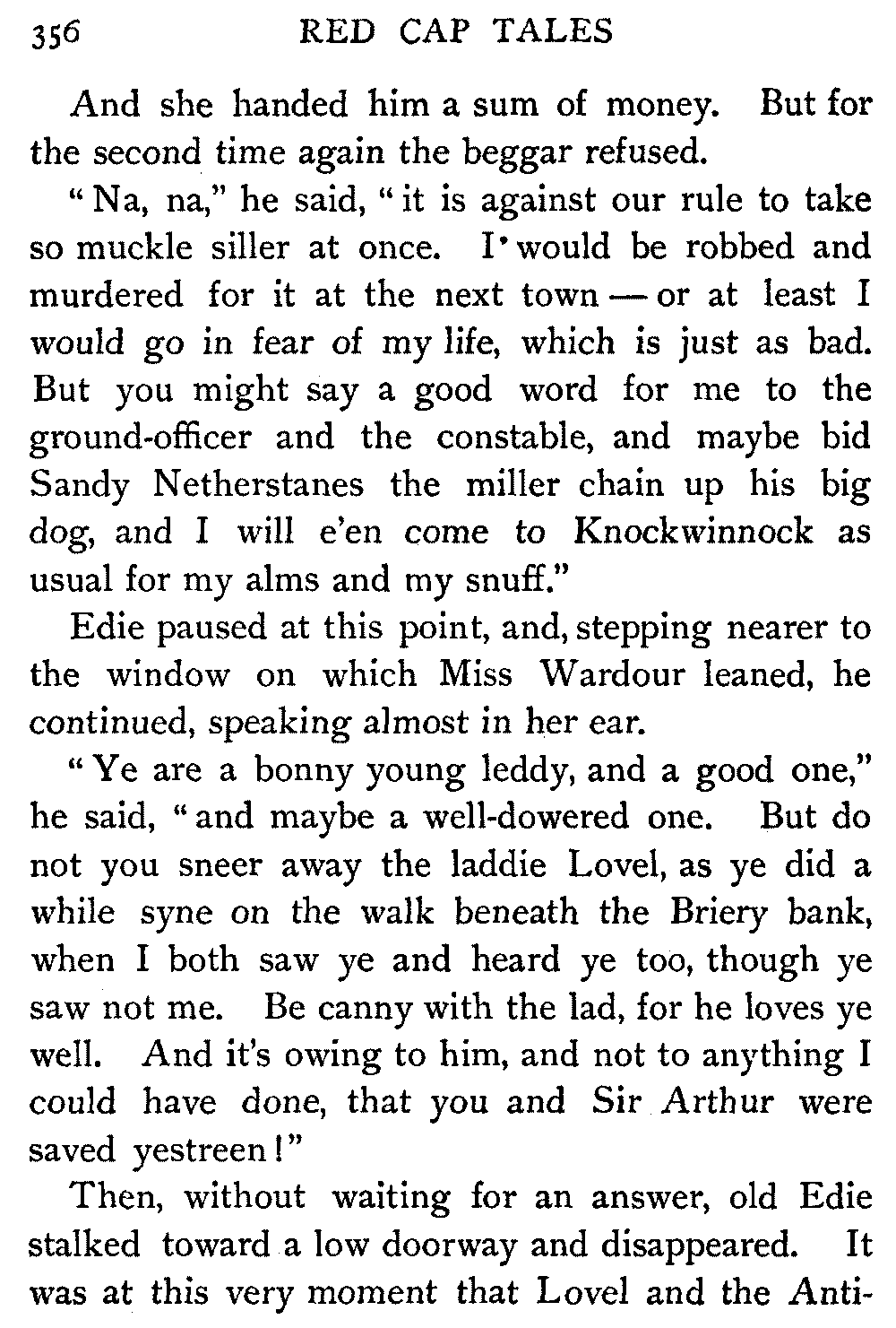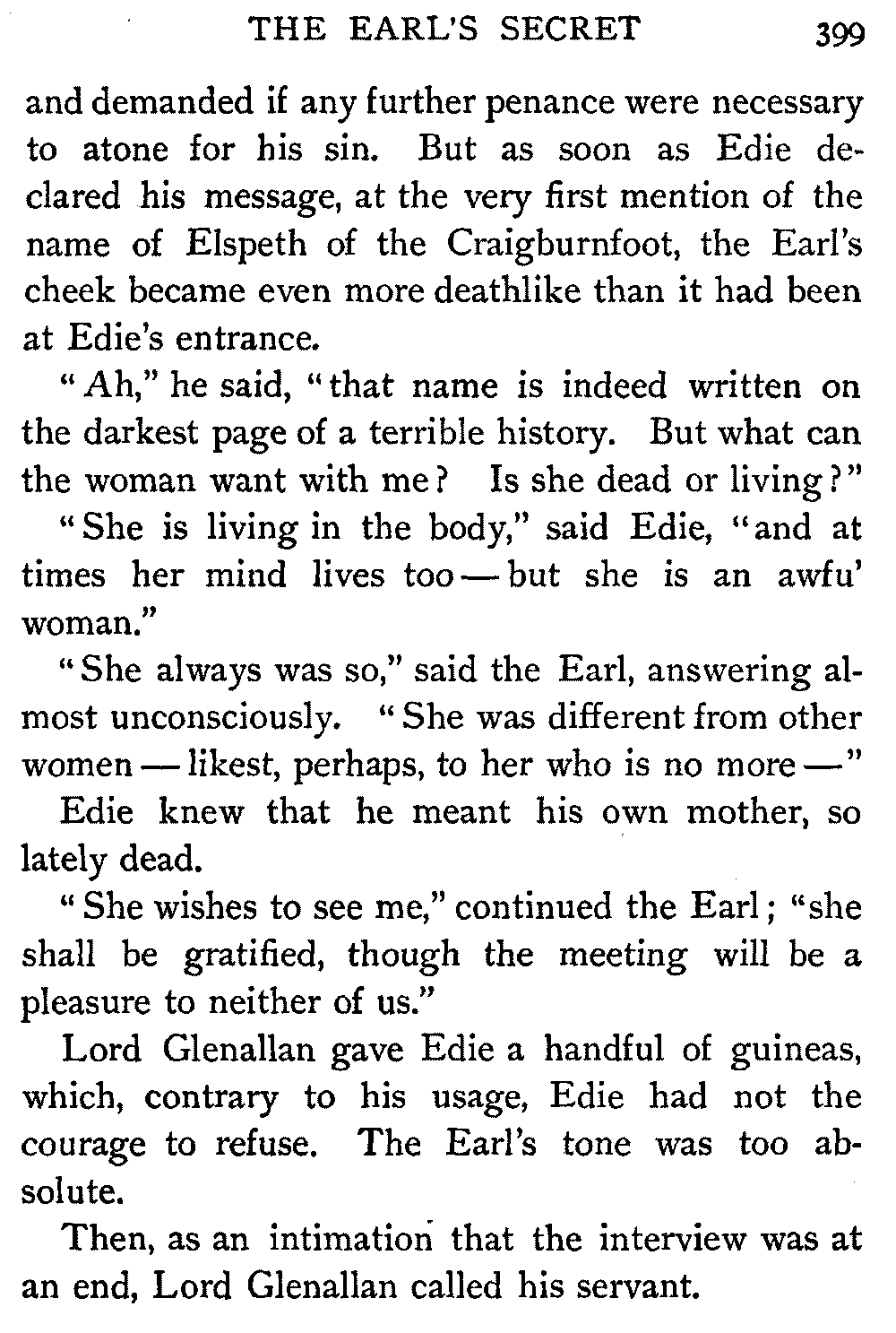 Lord Glenallan gave Edie a handful of guineas, which, contrary to his usage, Edie had not the courage to refuse. The Earl's tone was too absolute.