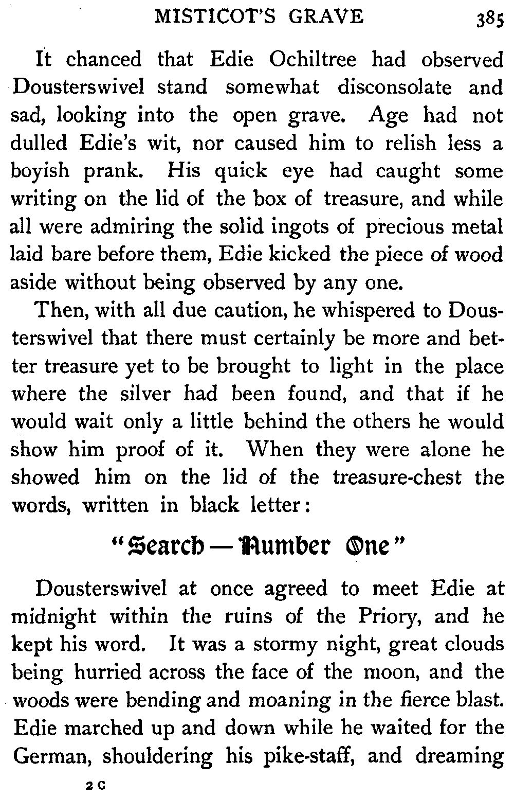 It chanced on the very night when Edie and Steenie had given a skinful of sore bones to the German impostor Dousterswivel, that the Countess of Glenallan, mother of the Earl, was brought to be buried at midnight among the ruins of St. Ruth.