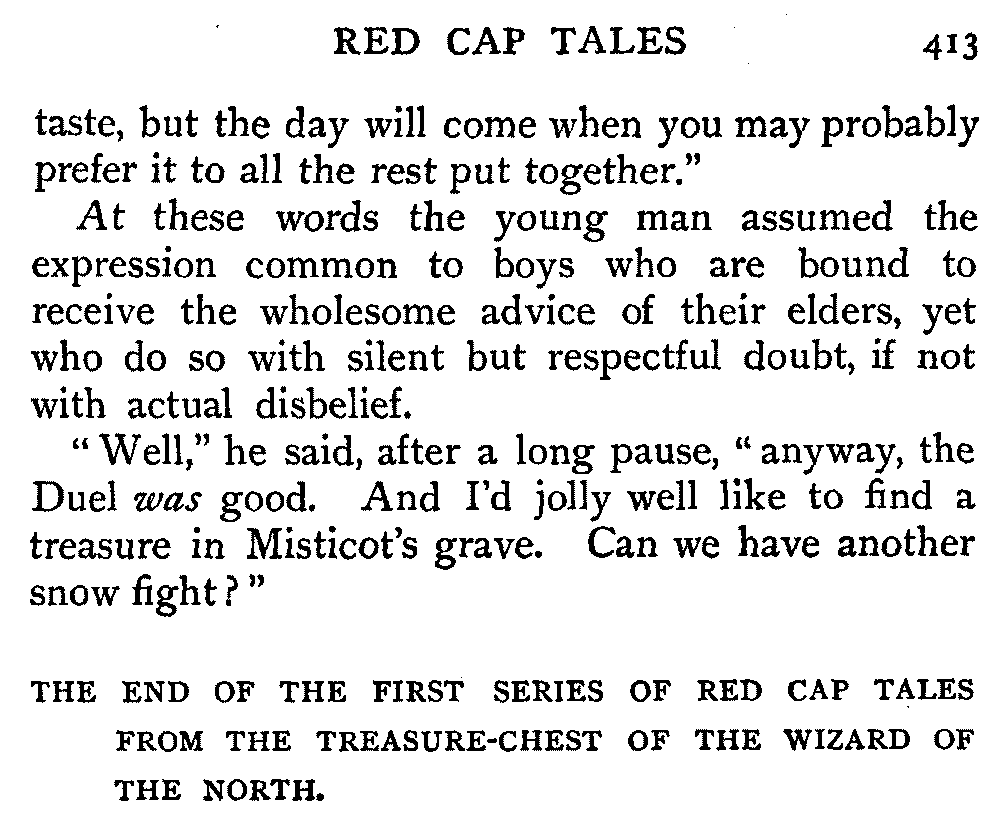 THE END OF THE FIRST SERIES OF RED CAP TALES FROM THE TREASURE-CHEST OF THE WIZARD OF THE NORTH.