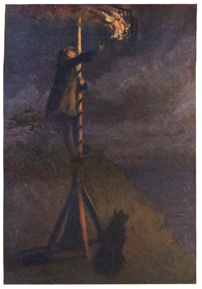 He lighted his beacon accordingly. It threw up to the sky a long wavering train of light, startling the sea-fowl from their nests, and reddening the sea beneath the cliffs. Caxon's brother warders, equally zealous, caught and repeated the signal. The district was soon awake and alive with the tidings of invasion.