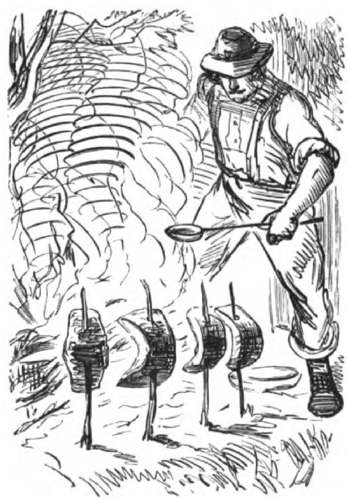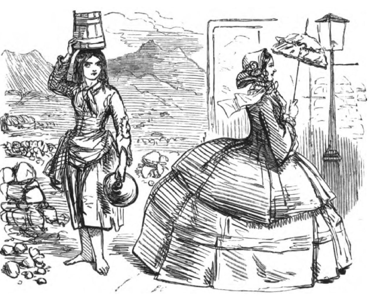 In the river hard by, a girl, standing ankle-deep, from time to time, like the young lady in “the Soldiers Tear” held aloft a snowy—never mind what; and, having plunged it into the stream, and placed it upon a stone, belaboured it (as though it were a drunken husband) with an implement of wood, which much resembled a villager's clumsy cricket-bat.