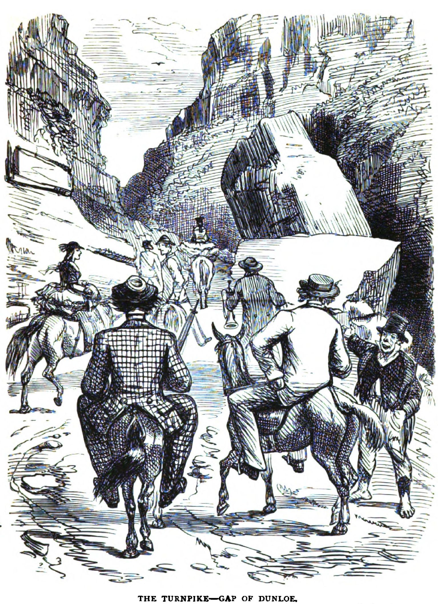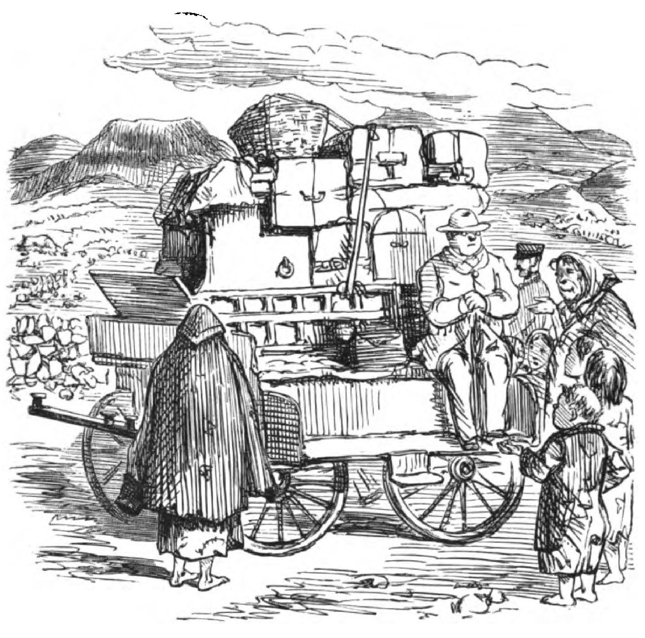 I have been so often and persuasively asked to republish A Little Tour in Ireland, which I wrote as “an Oxonian,” many years ago, at the request of my beloved friend and companion, John Leech, and of which only one edition has been issued, and that long since exhausted; I have been so severely upbraided for “keeping his splendid illustrations locked up in a box, and raising the price of the few copies which come into the market, to thrice the original cost;” I have been so fully certified, not only by hearsay but by my own eyes, that there is little or no perceptible change in the scenes, which he drew and I described; and my apprehension, that the style in which the book is written might be denounced as unbecoming, has been so completely expelled by the amused remonstrance of my friends, who insist that gaiety becomes an undergraduate as much as gaiters a Dean;—that I can make no further resistance, and only ask that the failings of the author may be condoned by the talent of the artist.