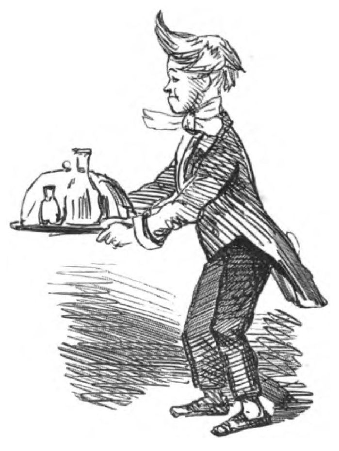 Others have roused me, though, and most uncomfortably. I heard a Devonshire girl, whom I met at a wedding breakfast, and with whom I thought I was progressing favourably, whispering to her neighbour, “This tipsy child is becoming a nuisance, and I really must ring for nurse,” when I was as sober as Father Mathew, and had whiskers of considerable beauty, if viewed in an advantageous light. Still more sadly and recently, another “daughter of the gods, divinely fair,” dissipated Love's young dream, and sent me forth to a foreign land to forget my sorrows, as, indeed, I immediately did.