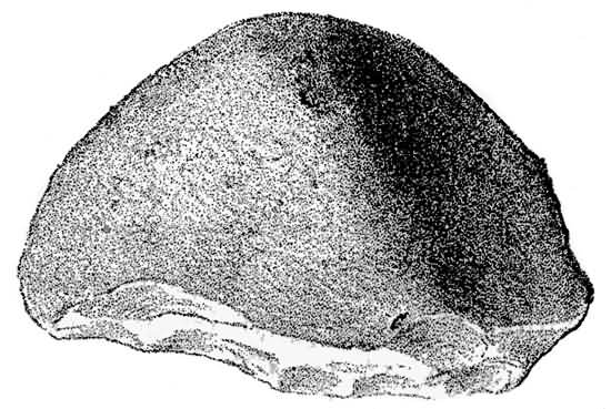 It will be seen at a glance that the Neanderthal skull, especially in the frontal part, which is the chief seat of intelligence, is nearer to the chimpanzee than to modern man. And all the other characters correspond to this inferiority of brain. The enormous superciliary ridges; the greater length of the fore-arm; the prognathous jaws, larger canine teeth, and smaller chin; the thicker bones and stronger muscular attachments; the rounder ribs; the flatter tibia, and many 403 other characters described by palæontologists, all point in the same direction, and take us some considerable way towards the missing link which is to connect the human race with animal ancestors.
