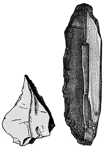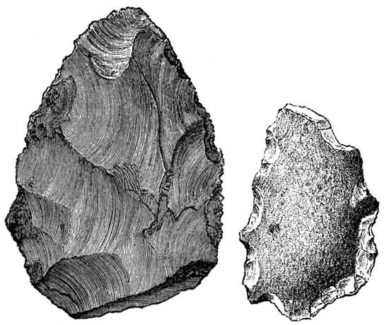 But if we accept the only two specimens known of the type of Tertiary man, the skulls of Castelnedolo and Calaveras, which are supported by such extremely strong evidence, it would seem that as we recede in time, instead of getting nearer to the "missing link," we get further from it. This, and this alone, throws doubt on evidence which would otherwise seem to be irresistible, and without a greater number of well-authenticated confirmations we must be content to hold our judgment to a certain extent in suspense. This, however, it must be remarked, extends only to the type of man as shown by these two skulls, and does not at all affect the fact that man, of some type or other, did exist in the Pliocene and Miocene periods, which is established beyond reasonable doubt by the numerous instances in which chipped implements and cut bones have been found by experienced observers, and pronounced genuine by the highest authorities.