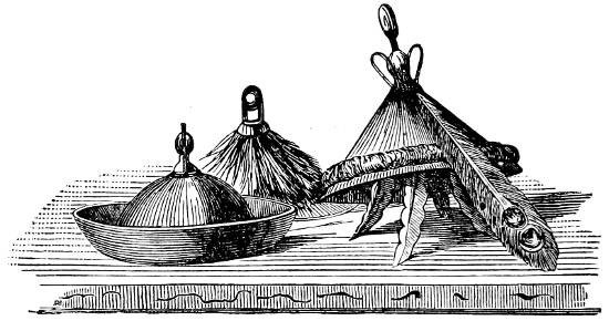 | Notions entertained by foreigners upon Chinese customs, 724; Architecture of the Chinese, 726; Building materials and private houses, 728; Their public and ornamental structures, 730; Arrangement of country houses and gardens, 731; Chinese cities: shops and streets, 736; Temples, club-houses, and taverns, 739; Street scenes in Canton and Peking, 740; Pagodas, their origin and construction, 744; Modes of travelling, 747; Various kinds of boats, 749; Living on the water in China, 750; Chop-boats and junks, 752; Bridges, ornamental and practical, 754; Honorary Portals, or Pai-lau, 757; Construction of forts and batteries, 758; Permanence of fashion in Chinese dress, 759; Arrangement of hair, the Queue, 761; Imperial and official costumes, 763; Dress of Chinese women, 764; Compressed feet: origin and results of the fashion, 766; Toilet practices of men and women, 770; Food of the Chinese, mostly vegetable, 772; Kinds and preparation of their meats, 776; Method of hatching and rearing ducks’ eggs, 778; Enormous consumption of fish, 779; The art of cooking in China, 781. | |
