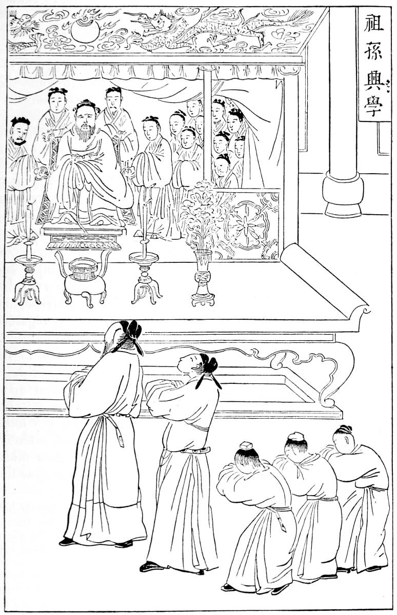 | Stimulus of literary pursuits in China, 520; Foundation of the present system of competition, 521; Precepts controlling early education, 522; Arrangements and curriculum of boys’ schools, 524; Six text-books employed: 1, The ‘Trimetrical Classic,’ 527; 2, The ‘Century of Surnames,’ and 3, ‘Thousand-Character Classic,’ 530; 4, The ‘Odes for Children,’ 533; 5, The Hiao King, or ‘Canons of Filial Duty,’ 536: 6, The Siao Hioh, or ‘Juvenile Instructor,’ 540; High schools and colleges, 542; Proportion of readers throughout China, 544; Private schools and higher education, 545; System of examinations for degrees and public offices, 546; Preliminary trials, 547; Examination for the First Degree, Siu-tsai; 549: For the Second Degree, Kü-jin, 550; Example of a competing essay, 554; Final honors conferred at Peking, 558; A like system applied to the military, 560; Workings and results of the system of examinations, 562; Its abuses and corruption, 566; Social distinction and influence enjoyed by graduates, 570; Female education in China, 572; Authors and school-books employed, 574. | |