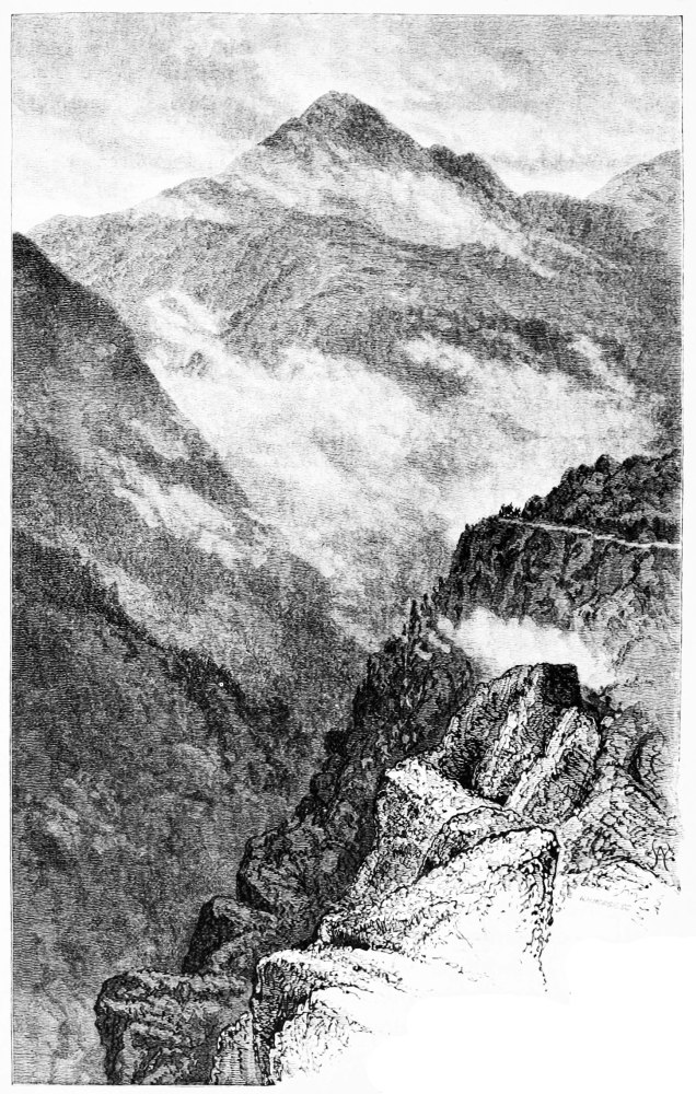 “It is in spite of himself, under the enticement of a great reward, that the superstitious Hindoo decides to accompany the traveller into the mountains, which he dreads less for the unknown dangers of the ascent than for the sacrilege he believes he is committing in approaching the holy asylum, the inviolable sanctuary of the gods he reveres; his trouble becomes extreme when he sees in the peak to be climbed not the mountain, but the god whose name it bears. Henceforth it is by sacrifice and prayer alone that he may appease the profoundly offended deity.”