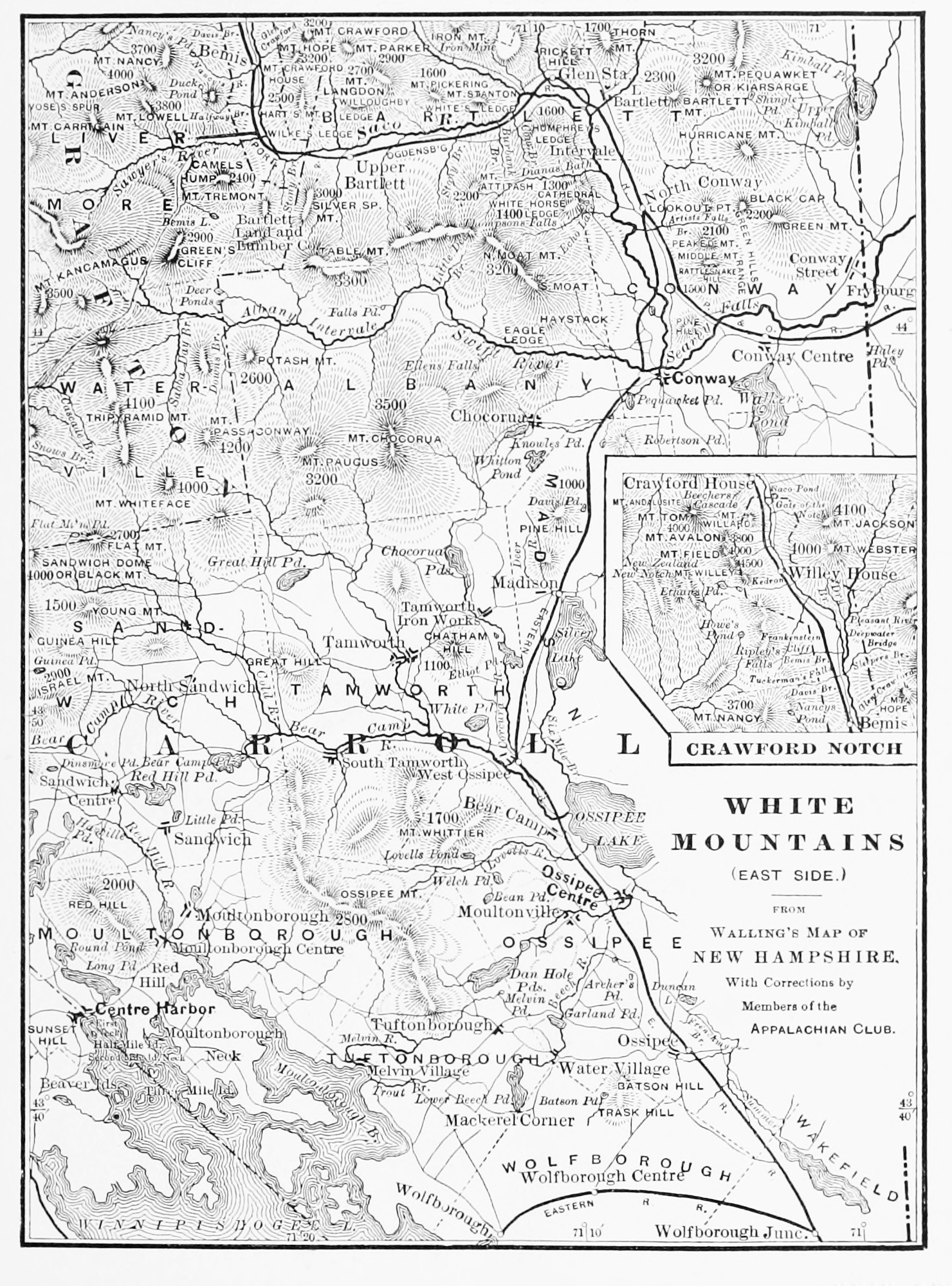 [6] Dr. Jeremy Belknap relates that, on his journey through this region in 1784, he was besought by the superstitious villagers to lay the spirits which were still believed to haunt the fastnesses of the mountains.