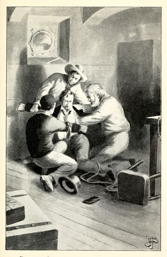 "To both questions the young man seemed too much out of breath to reply, offhand; but turning and pointing in the direction whence he came, he shook his head warningly, threw himself down on the roadbed, as limp as a rag, and began fanning himself with his cap. After getting his breath a little, he made out to say, 'Bridge afire—quarter mile back. Tried put it out—couldn't. Heard[Pg 11] train coming—afraid be too late. Couldn't run another step.'