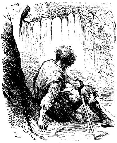 "One day when we were on the top of a hill on the west side of the island, Friday suddenly began to jump and dance about in great glee. I asked him what the matter was. 'O, joy, O glad,' he said; 'there my country!' The air was so clear that from this place, as I had before discovered, land could be distinctly seen looking westward.