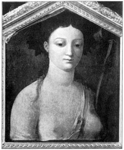 My frontispiece is taken by the kind permission of the Messrs. Alinari of Florence, from their photograph of a work in the museum at Cortona called La Musa Polinnia. It is on slate and burnt, is a little more than half life size, and is believed to be Greek, presumably of about the Christian era, but no more precise date can be assigned to it. I was assured at Cortona that it was found by a man who was ploughing his field, and who happened to be a baker. The size being suitable he used it for some time as a door for his oven, whence it was happily rescued and placed in the museum where it now rests.
