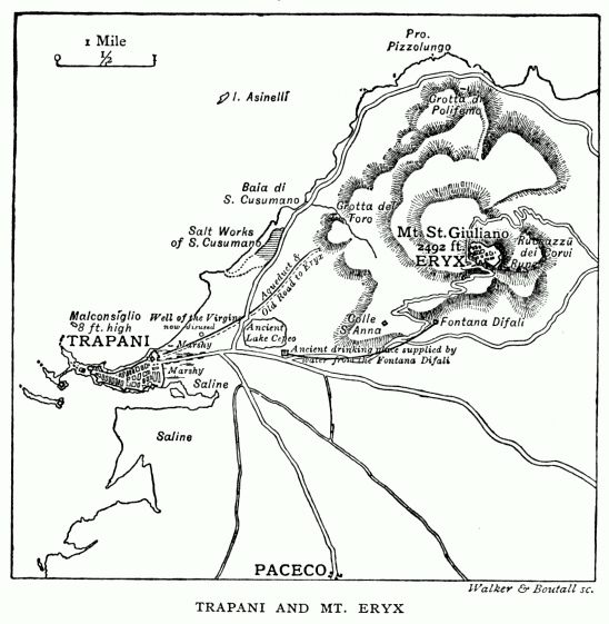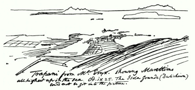 Trapani and Ægadean islands from Mt. Eryx, sketch of, 178