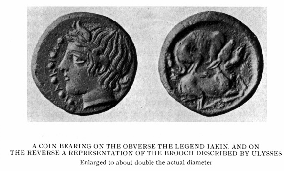 (c) The illustration of the coin which shows the design of the brooch of Ulysses is now given on a separate page, whereas formerly it was in the text, therefore the pagination is thrown out from page 227 until the end of the chapter, page 231. Doubt has recently been cast upon the accuracy of the statement on pp. 226-7, that this coin certainly belongs to the Eryx and Segesta group.