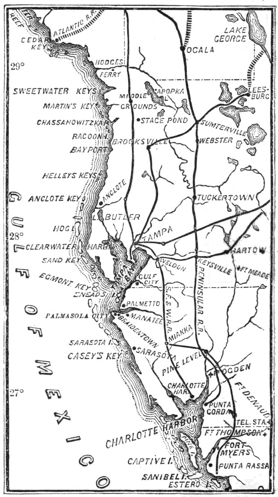TWO or three letters written by myself to friends at the North having found their way into print, I have been literally flooded with letters during the past six months, from all sections of the Union and British Provinces, asking for information in relation to the Manatee region of Florida. Hundreds have been replied to, and many remain unanswered for want of time. This little book has been written with the belief that it will answer the requirements of my numerous correspondents, and also prove a welcome guest to others who desire reliable information concerning this portion of the Gulf coast of South Florida. With these brief remarks I cast my little waif upon the tide of public opinion, with the hope that favorable breezes will waft it into the hands of those who will be benefited by its perusal.