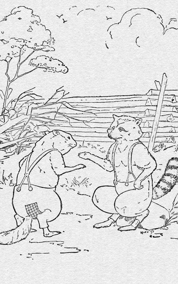 “I think it’s down this way a little,” he answered. And once more they scampered off together, chattering and waving their lovely tails.