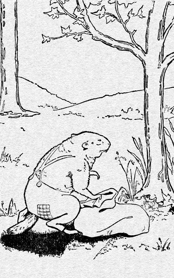 It took them much longer to dress than usual, because they had not stopped to brush their tails out the night before. Hazel’s was dreadfully matted down and Bushie’s was full of burs. How it did hurt when Hazel, as carefully as could be, helped him pick them out. But he bravely choked back the tears and blew his nose very hard. He did not want his new friends to think him a baby, of course.
