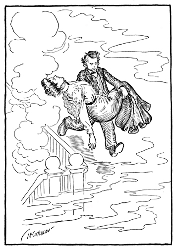 That homely clerk took her out for a ride Last Sunday in a buggy, and they rode Around all through the parks; I wisht I'd knowed About it, and the horse would kind of shied, And then got scared and run and kicked, and I'd Of been a piece ahead and saw him jump And leave her hangin' on alone, the chump, And she'd of been so 'fraid she'd nearly died. Then I'd of give a spring and caught the bit, And landed on the horse's back, where all The people there could see me doin' it, And when I got her saved the crowd would call Three cheers for me, and then she'd come and fall Against my buzzum, and he'd have a fit. |