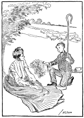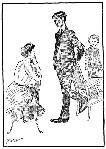 I don't care if she's twic't as old as me, For I've been figgerin' and figgers shows That I'll grow older faster than she grows, And when I'm twenty-one or so, why, she Won't be near twic't as old as me no more, And then almost the first thing that she knows I might ketch up to her some day, I s'pose, And both of us be gladder than before. When I get whiskers I can let them grow All up and down my cheeks and on my chin, And in a little while they might begin To make me look as old as her, and so She'd snuggle up to me and call me "paw." And then I'd call her "pet" instead of "maw." |