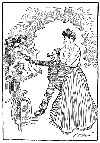 I wish, some day, when she's typewritin' and I've took a note out for the boss somewhere, They'd be some outlaws sneak in here and scare That long-legged clerk to death and then the band Would steal her, and nobody else would dare To try to save her, and they'd run away To where they had their cave, and keep her there, And ast more for her than her folks could pay. Then I would get a gun and bowie-knife And take the name of Buckskin Bob or Joe, And track them to their den, and then I'd go A-galley whoopin' in, and save her life, And she would say: "My hero's came at last!" And we'd stand there and hold each other fast. |