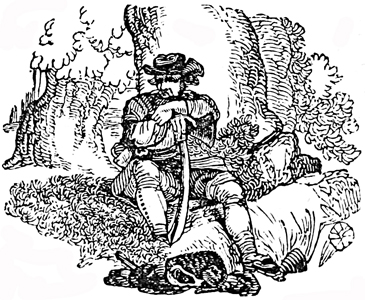 Though his character was known, he was rather a favorite with many persons of good standing, and was on one occasion invited to spend several days in hunting with Colonel Strangeways, at Milbury. The conversation happened one day, at dinner, to turn on Carew's ingenuity, and the colonel remarked that he would defy him to practise deception on him. The next day, while the colonel was out with his hounds, he met with a miserable object upon a pair of crutches, with a wound in his thigh, a coat of rags, and a venerable, pity-moving beard. His countenance expressed[Pg 281] pain and sorrow, and as the colonel stopped to gaze upon him, the tears trickled down his silver beard. As the colonel was not proof against such an affecting sight, he threw him half a crown, and passed on. While he was at dinner, the miserable object came in, when lo, it was Carew himself!
