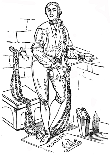 He once dislocated the vertebræ of his back and other parts of his body, in such a manner, that Molins, the famous surgeon, before whom he appeared as a patient, was shocked at the sight, and would not even attempt his cure. On one occasion, he ordered a coat of a tailor. When the latter measured him, he had an enormous hump on his left shoulder; when the coat came to be tried on, the hump was shifted to the right side! The tailor expressed great astonishment, begged a thousand pardons, and altered the coat as quickly as possible. When he again tried it on, the deformity appeared in the middle of his back!