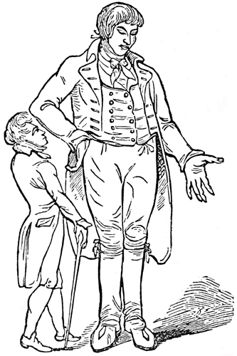 On his return to England, his father being dead, he went to live with his uncle, Sir Harvey Elwes, a[Pg 285] wealthy miser, who resided at Stoke, in Suffolk. In order to make a favorable impression upon his uncle, the nephew doffed his gay attire, at the little inn at Chelmsford, and appeared at Stoke with an old worn-out coat, a tattered waistcoat, darned worsted stockings, and small iron buckles in his shoes. He was received by Sir Harvey with satisfaction, who now adopted him as his heir. Here the two lived together, shivering with a single stick on the fire, occasionally dividing a glass of wine between them, and railing against the extravagance of the times. When night approached, they went to bed, to save the expense of candles!