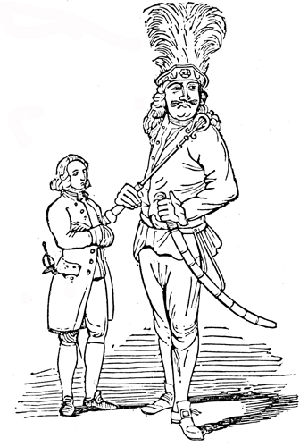 Among the most celebrated of this class of persons was Jeffrey Hudson, born at Oakham, England, in 1619. At seven years of age, he was taken into the service of the Duke of Buckingham, being then but eighteen inches high. He afterwards was taken into the service of the queen of Charles I., who sent him to the continent on several confidential commissions. His size never exceeded three feet nine inches, but he possessed a good share of spirit, and, on the breaking out of the civil wars, he became a captain of horse.