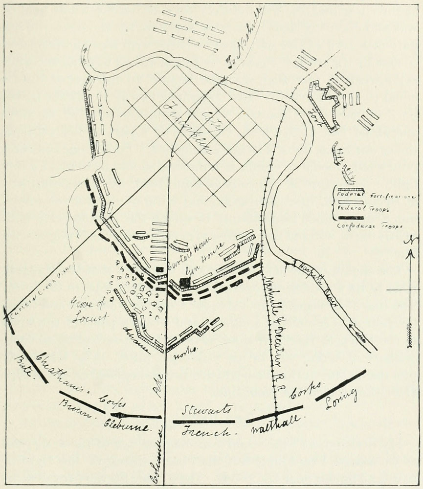 It has been a source of regret to me that I was unable to write an official report of the battle of Franklin immediately after it was ended, but on account of the condition of my eyes it was put off; and now I wonder why I did not have my chief of staff write it under my dictation, but so it is: amidst the confusion following the battle it was neglected. I might add here that it was years before my eyes were well, though treated by a specialist.